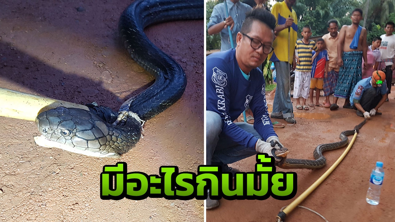 เด็กน้อย 6 ขวบ ตกใจ เจอ "จงอางยักษ์ 4 เมตร" เลื้อยอยู่พงหญ้าใกล้สวนปาล์ม มีท่าทีดุร้าย สภาพผอม ด้านกู้ภัยกระบี่ ต้องบุกจับปล่อยที่อื่น เกรงจะเกิดอันตรายขึ้นกับชาวบ้าน...