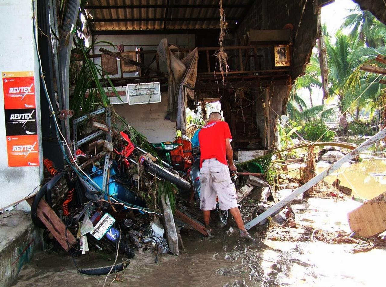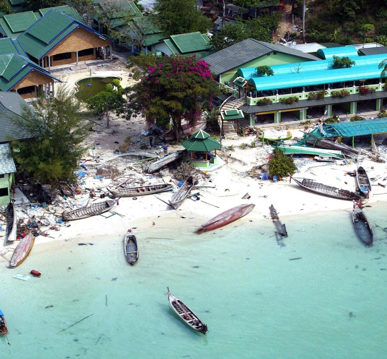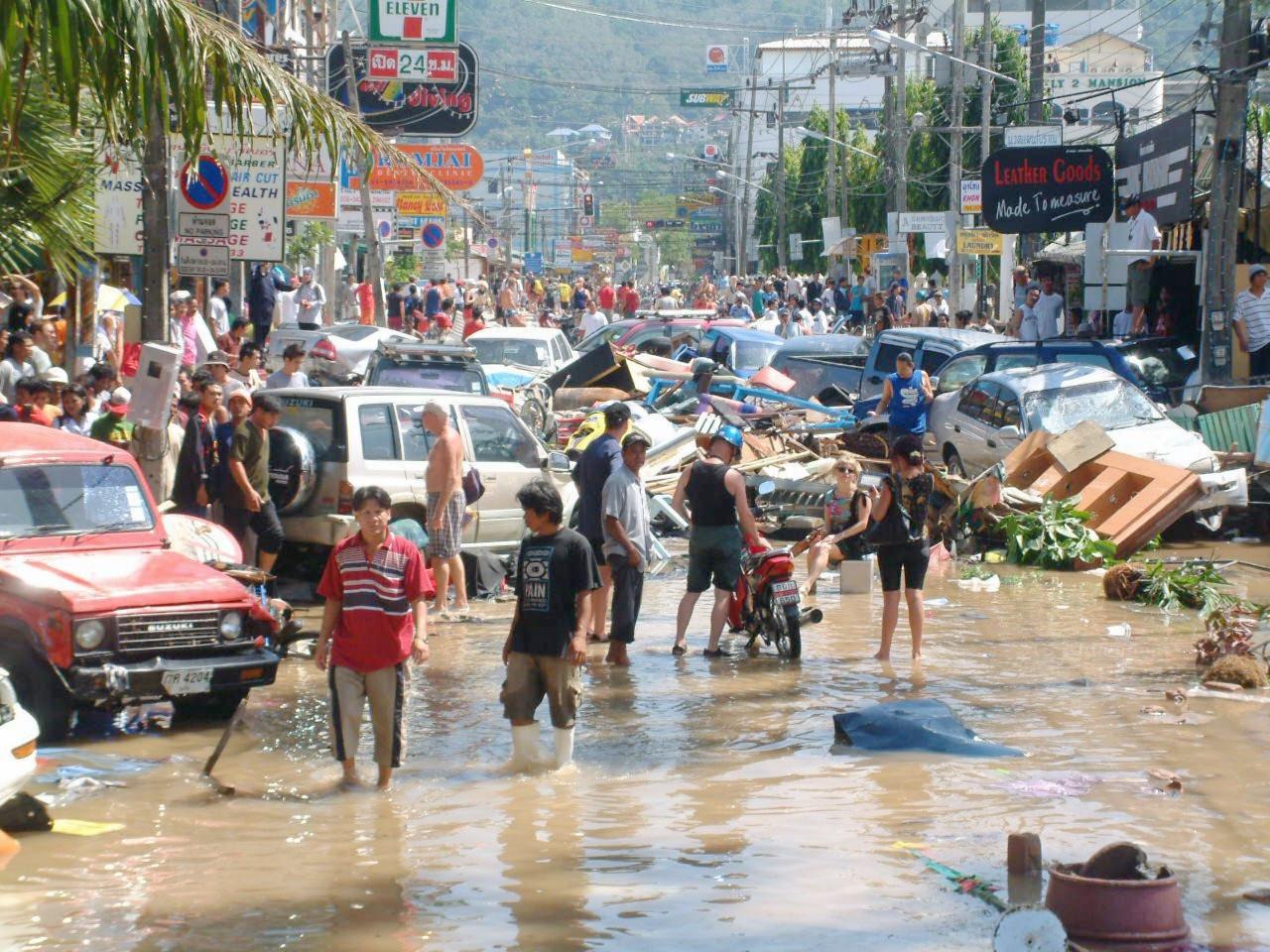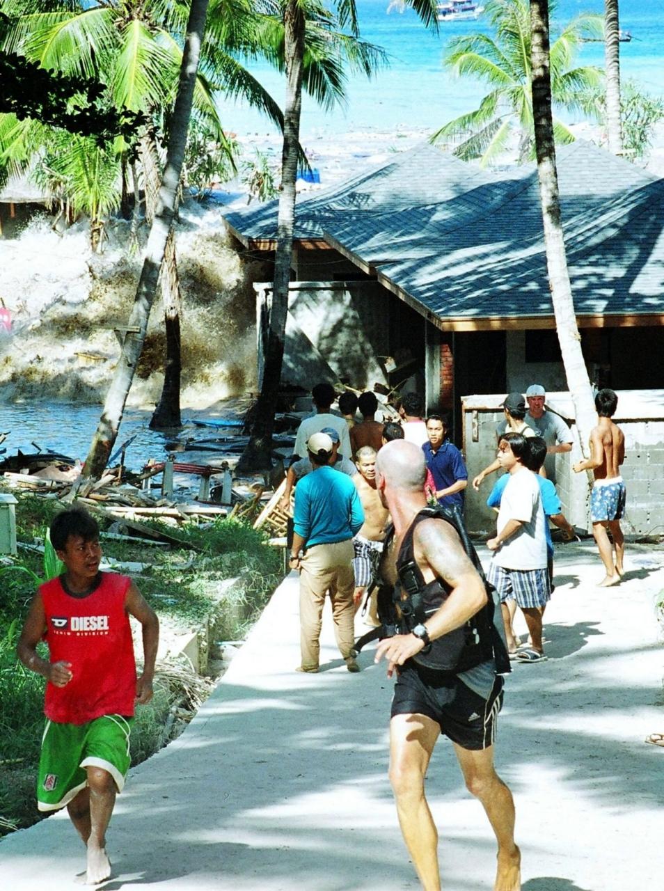 นักท่องเที่ยวชาวต่างชาติที่นั่งเล่นนอนเล่นตามชายหาด ถูกคลื่นซัดตกทะเลสูญหายไปทันทีหลายสิบคน ขณะที่รถยนต์และรถจักรยานยนต์ที่วิ่งอยู่บนถนนริมชายหาด ได้ถูกกระแสน้ำกวาดลงทะเลไปจำนวนมากเช่นกัน เรือประมงที่จอดอยู่ริมชายฝั่งถูกคลื่นซัดจมหลายสิบลำ
