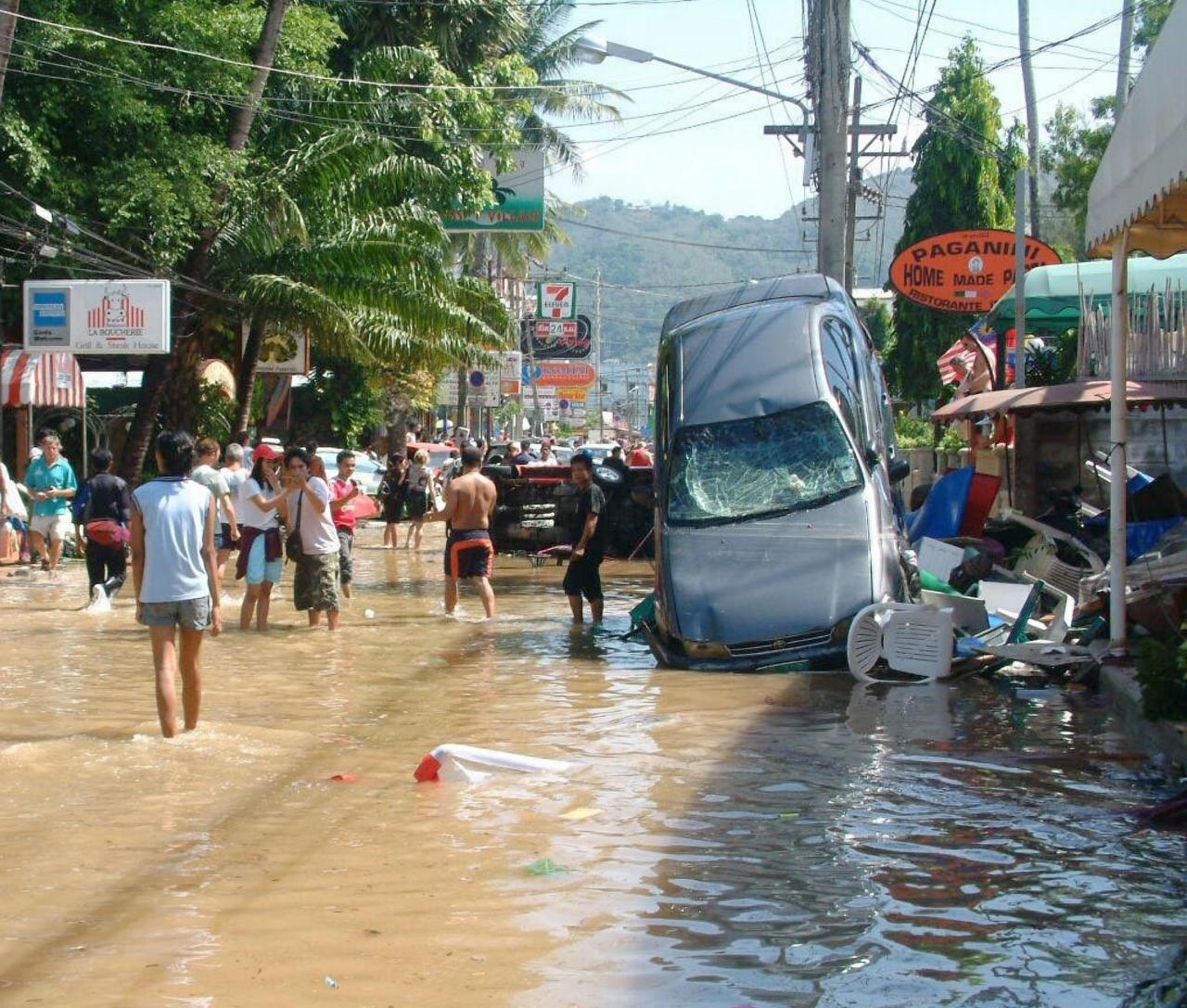 07.50 น. คลื่นในทะเลอันดามันขนาดความสูง 7-8 เมตร พัดเข้าหาชายฝั่ง ส่งผลให้พื้นที่บริเวณชายฝั่งใน จ.ภูเก็ต เกิดน้ำท่วมฉับพลัน