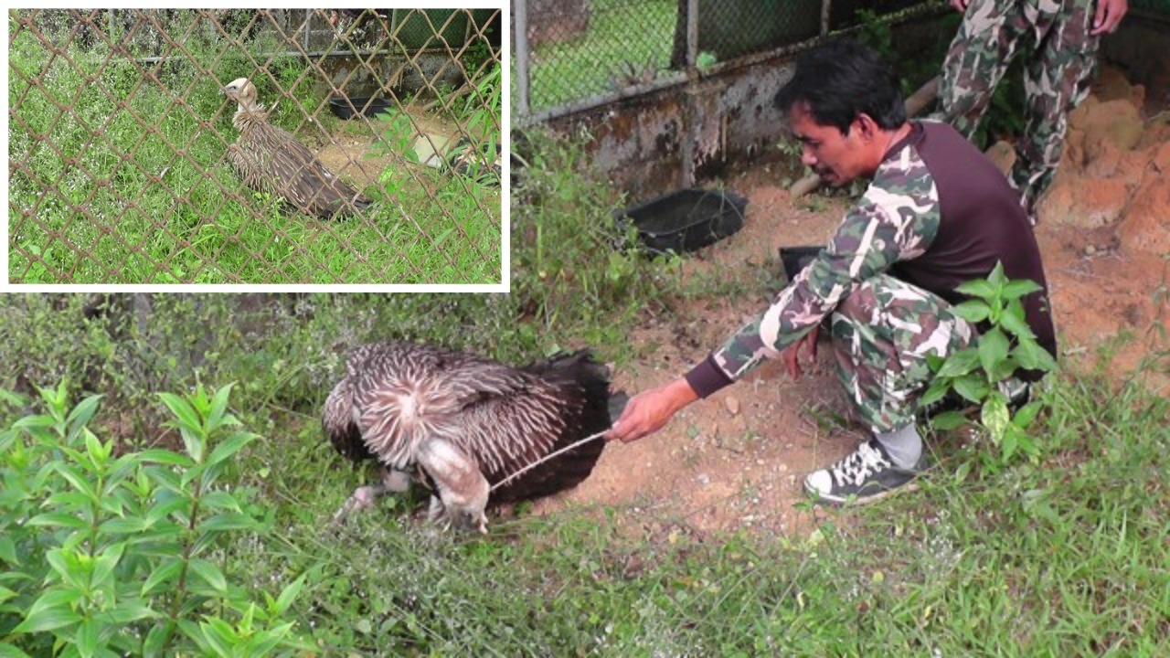 จนท.สถานีเพาะพันธุ์สัตว์จังหวัดพังงา เฝ้าดูอาการอีแร้งสีน้ำตาลหิมาลัยคาดบินหนีหนาวจากทิเบต มาเจอพายุปาบึกจนหมดแรงบินไม่ไหว ล่าสุดยังอ่อนแรงไม่กินอาหาร จนท.ต้องให้ยาบำรุงและเฝ้าดูอาการใกล้ชิด