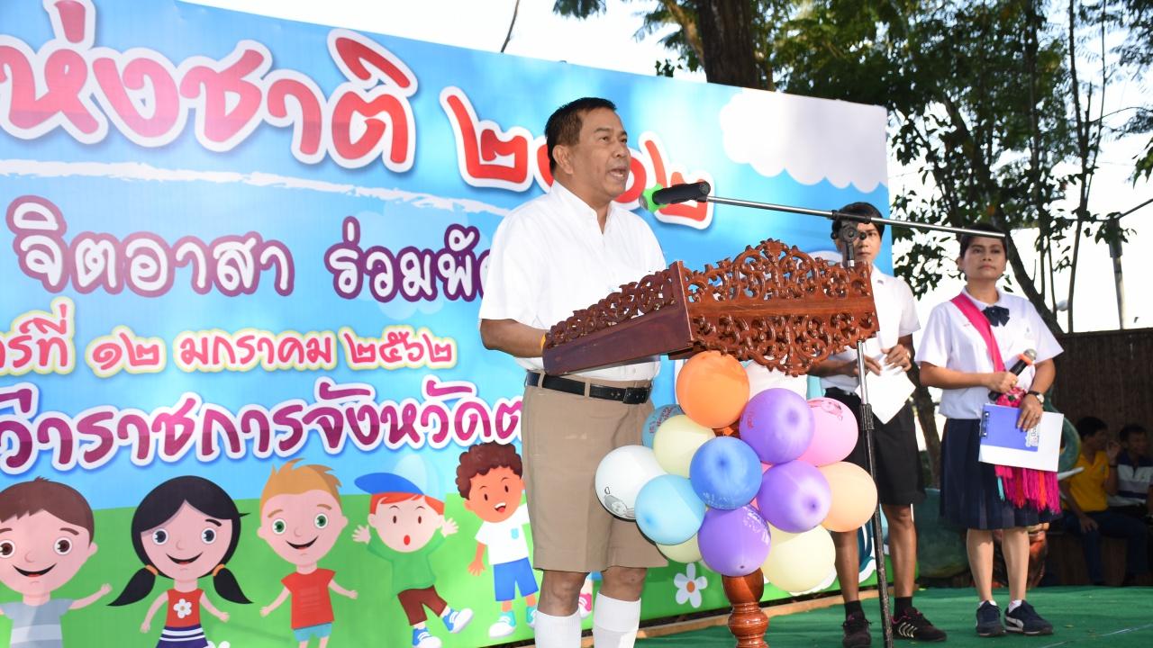 ที่จวนผู้ว่าฯ ตรัง วันที่ 12 ม.ค.62 เป็นวันเด็กแห่งชาติ นายลือชัย เจริญทรัพย์ ผวจ.ตรัง เป็นประธานในพิธีเปิดงานวันเด็กแห่งชาติ ประจำปี 2562 และอ่านสารนายกรัฐมนตรี เนื่องในโอกาสวันเด็กแห่งชาติ ประจำปีพุทธศักราช 2562 มี นางเอื้อจิตร เจริญทรัพย์ นายกเหล่ากาชาด จ.ตรัง นางณิทฐา แสวงทอง รอง ผวจ.ตรัง หัวหน้าส่วนราชการ ร่วมกิจกรรมการจัดงานวันเด็กแห่งชาติ โดยมีพ่อแม่ ผู้ปกครอง ที่เดินทางมาเที่ยวและร่วมกิจกรรมบรรยากาศเป็นไปด้วยความคึกคัก และมีความสุข โดยมีส่วนราชการ ข้าราชการ จากหน่วยงานต่างๆ ร่วมจัดบูธแจกของขวัญให้กับเด็กที่มาร่วมงาน โดย นายลือชัย เจริญทรัพย์ ผวจ.ตรัง สวมชุดนักเรียนแปลงโฉมย้อยยุค สมัยยังเป็น ด.ช.ลือชัย เจริญทรัพย์ ร่วมกิจกรรมนันทนาการบนเวทีกับเด็กๆ ผู้ปกครอง อย่างเป็นกันเอง ไม่ถือตัว