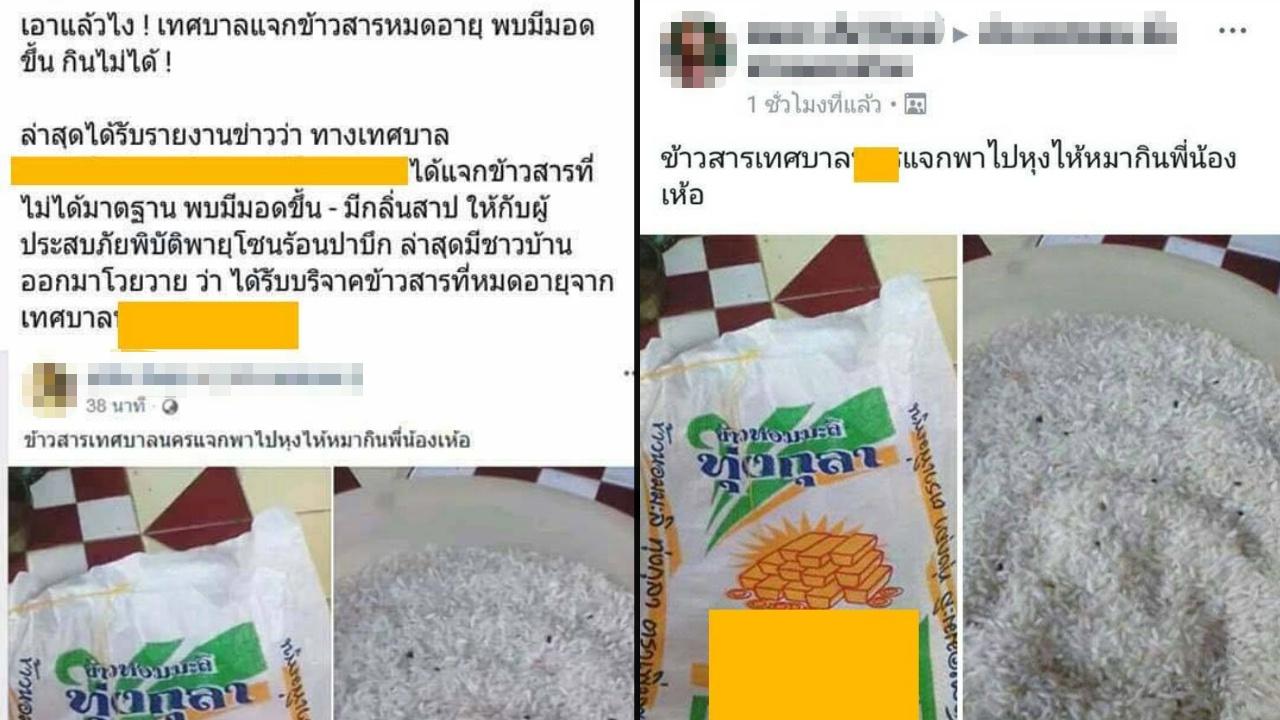 ทั้งนี้ ผู้สื่อข่าวรายงานเพิ่มเติมว่า ในกลุ่มไลน์และเฟซบุ๊กต่างเขียนข้อความโจมตีเทศบาลด้วยข้อความที่รุนแรงหลายข้อความ และต่างเรียกร้องให้ทางจังหวัดลงมาตรวจสอบเรื่องนี้ รวมถึงให้ทางเทศบาลรับผิดชอบโดยการรับเปลี่ยนข้าวสารถุงให้ใหม่กับผู้ประสบภัยที่มีสิ่งเจือปนอยู่ด้วย.