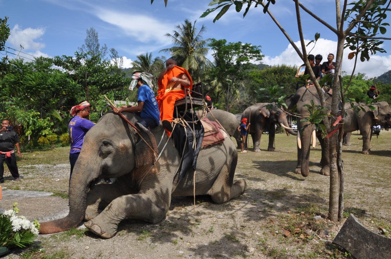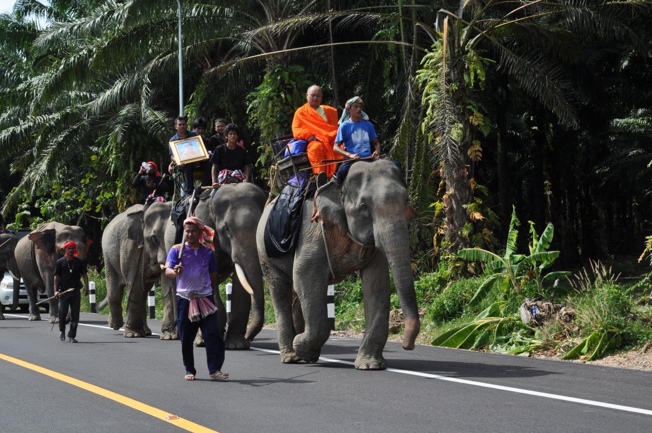 จากการสอบถาม นายพุทธชาติ เหมรัตน์ หรือ ควาญตาล อายุ 35 ปี ชาวบ้าน หมู่ 5 ต.ในควน อ.ย่านตาขาว จ.ตรัง เป็นเจ้าของช้างทั้ง 11 เชือก และเป็นลูกเขยของผู้เสียชีวิต เผยว่า ตามความเชื่อนั้นช้างเป็นสัตว์ใหญ่ คนสมัยโบราณมักใช้ขบวนช้างนำหน้าศพคนที่มีเกียรติยศชื่อเสียง เพื่อความเป็นสิริมงคล แล้วก็จะส่งผลบุญและความยิ่งใหญ่มาถึงลูกหลานและคนที่อยู่ข้างหลัง วันนี้ช้างที่ใช้แห่ขบวนศพมีทั้งหมด 11 เชือก นำหน้าขบวนแห่ศพแม่ยายตามความเชื่อ ซึ่งช้างที่ใช้แห่ขบวนก็ต้องเป็นจำนวนคี่ถึงจะเป็นมงคล ตามความเชื่อมาแต่สมัยโบราณเช่นกัน