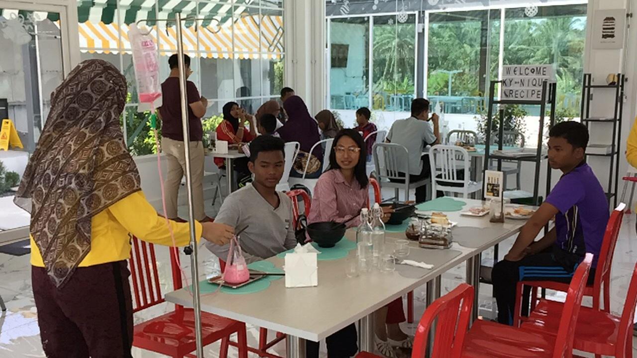 รวมทั้งนำมาใช้เสิร์ฟอาหารให้ลูกค้า แรกทีเดียวลูกค้าก็แปลกใจ บางคนก็มีความกลัวต่ออุปกรณ์บ้าง แต่เมื่อเปิดมาสักระยะ ก็กลายเป็นลูกค้าติดใจ พาลูกๆ หลานๆ มานั่งกินอาหาร ซึ่งบรรยากาศภายในร้าน พยายามตกแต่งให้เหมือนบรรยากาศในโรงพยาบาล แต่ให้เป็นบรรยากาศแบบสบายๆ ซึ่งเด็กๆ ก็จะเลิกกลัวอุปกรณ์การแพทย์ ทำให้กลุ่มลูกค้าส่วนใหญ่ จะเป็นกลุ่มครอบครัว
