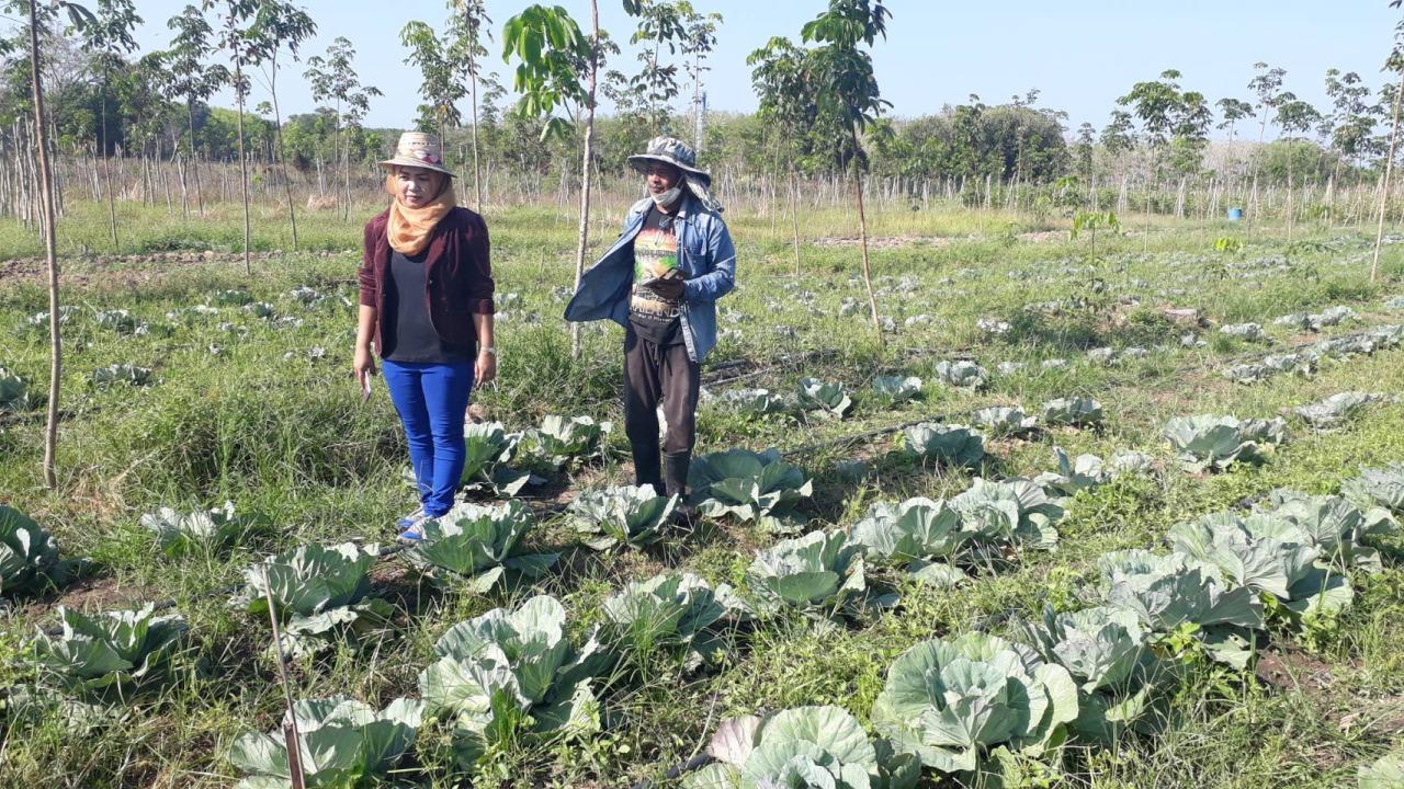 เกษตรกรผู้ปลูกกะหล่ำปลี กล่าวต่อว่า ตนทดลองปลูกกะหล่ำปลีโดยใช้พื้นที่ว่างระหว่างร่องสวนยาง โดยสวนยาง1ร่องสามารถปลูกกะหล่ำปลีได้ 6 แถว พื้นที่1ไร่ ตนปลูกกระหล่ำปลีไป 4,000 ต้นแต่ละแถวจะปลูกแบบทดลองทั้งหมด เช่น แบบขังน้ำ แบบน้ำน้อย แบบใช้ฮอร์โมนเร่งห่อ และจากการทดลองปลูกครั้งแรกถือว่าประสบผลสำเร็จพบว่ากะหล่ำปลีชอบดินเหนียวปนร่วนซุย ซึ่งอุ้มน้ำได้ดีกว่า กะหล่ำปลีชอบความชื้นรดน้ำวันละ 2 ครั้ง ช่วง10 โมงเช้าและ 3 โมงเย็น
