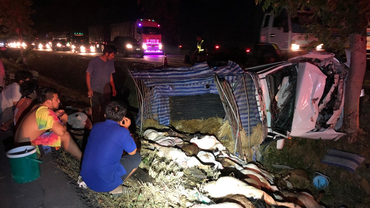 รถกระบะขนแพะประสบอุบัติเหตุเสียหลักชนต้นไม้จนพลิกคว่ำ ที่ถ.เพชรเกษม จ.ประจวบคีรีขันธ์ คนขับรถกับเพื่อนปลอดภัย แต่แพะจำนวนมากกระเด็นตกรถตายกว่า 30 ตัว...
