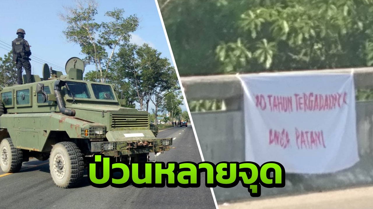 เจ้าหน้าที่สนธิกำลังเข้าตรวจสอบป้ายผ้า ภาษารูมี พ่นสีสเปรย์กลางถนน ป่วนนราฯ 4 อำเภอ เร่งตรวจสอบลายนิ้วมือ เทียบดีเอ็นเอ บุคคลในคดีความมั่นคง...