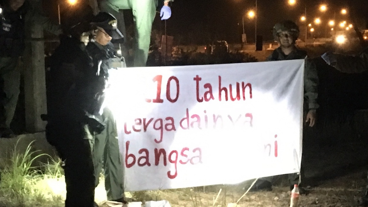 พบวัตถุต้องสงสัยบริเวณป้ายโฆษณา ริมทางหลวง สาย 418 พบเป็นระเบิดปลอมพร้อมมีป้ายผ้าใจความ "ครบรอบ 110 ปีการจำนองชาติพันธุ์ปัตตานี" ตร.ยะลา คาดคนร้ายหวังสร้างสถานการณ์ป่วนเมือง...