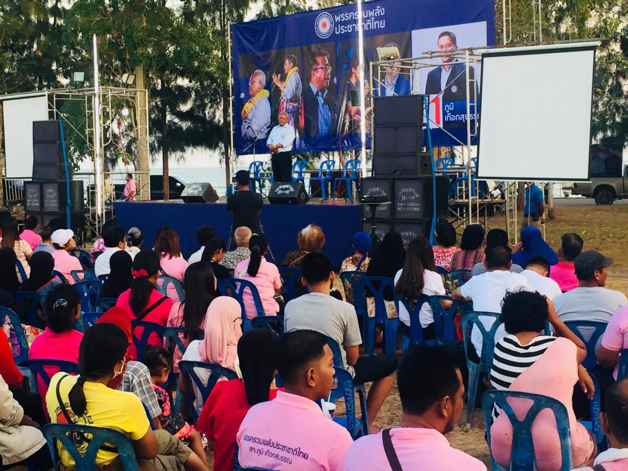 เมื่อค่ำวันที่ 12 มี.ค. ที่สวนสาธารณะแหลมโพธิ์ ต.พุมเรียง อ.ไชยา จ.สุราษฎร์ธานี นายสุเทพ เทือกสุบรรณ แกนนำและผู้ก่อตั้งพรรครวมพลังประชาชาติไทย(รปช.) พร้อมด้วยแกนนำพรรค อาทิ นายเขตรัฐ เหล่าธรรมทัศน์ นายสำราญ รอดเพชร น.ส.เพชรชมพู กิจบูรณะ และนายจักษ์ พันธ์ชูเพชร ได้เปิดเวทีปราศรัยหาเสียงช่วยนายภูมิ เทือกสุบรรณ ซึ่งเป็นหลานนายสุเทพ ผู้สมัครหมายเลข 1 พรรครวมพลังประชาชาติไทย เขต 6 จ.สุราษฎร์ธานี โดยมีผู้ฟังการปราศรัยจำนวนมาก