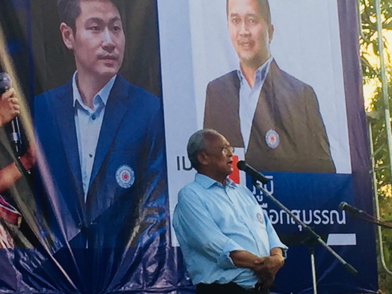 นายสุเทพ กล่าวตอนท้ายว่า ตอนนี้เป็นการเลือกระหว่าง 2 ข้าง สนับสนุนให้ พล.อ.ประยุทธ์ เป็นนายกรัฐมนตรีต่อไป กับเลือกพรรคฝ่ายของนายทักษิณ ในเมื่อพรรคประชาธิปัตย์พูดออกมาชัดถ้อยชัดคำแล้วว่าไม่สนับสนุนพล.อ.ประยุทธ์ เป็นนายกรัฐมนตรี สงสัยนายอภิสิทธิ์จะลืมตัวไปว่าวุฒิสภา 250 เสียงแต่งตั้งมาโดยพล.อ.ประยุทธ์ เขาก็ต้องเลือกพล.อ.ประยุทธ์เป็นนายกรัฐมนตรีคงไม่มีใครหน้าไหนมาเลือกคนอื่นเป็นนายกฯ ฉะนั้นวันที่ 24 มีนาคมขอมั่นใจได้ว่าให้เลือกพรรครวมพลังประชาชาติไทย เพราะเราเป็นพรรคร่วมรัฐบาลแน่นอน.