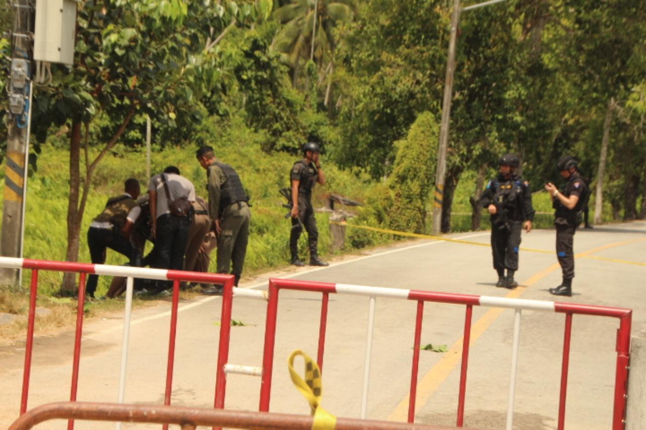 เมื่อเวลา 10.30 น.วันที่ 13 มี.ค.62 ร.ต.อ.มนตรี เพชรนวลน้อย รองสารวัตรสอบสวน สภ.ยี่งอ จ.นราธิวาส รับแจ้งมีเหตุคนร้ายขว้างระเบิดใส่ที่พักของชุดรักษาความปลอดภัยหมู่บ้านสุโบะตะแซ ซึ่งตั้งอยู่ถนนมณีชยางกูร ม.3 ต.ยี่งอ จึงพร้อมด้วย พ.ต.อ.ดุลยมาน แยนา ผกก.สภ.ยี่งอ พ.ต.ท.ประจวบ นิ่มเรือง หน.ชุดกู้เก็บและทำลายวัตถุระเบิด หน่วยปฏิบัติการพิเศษ กองกำกับการตำรวจภูธร จ.นราธิวาส เจ้าหน้าที่กองพิสูจน์หลักฐาน จ.นราธิวาส รวมทั้งกำลังเจ้าหน้าที่ตำรวจทหารจำนวนหนึ่ง รุดเดินทางไปตรวจสอบที่เกิดเหตุ