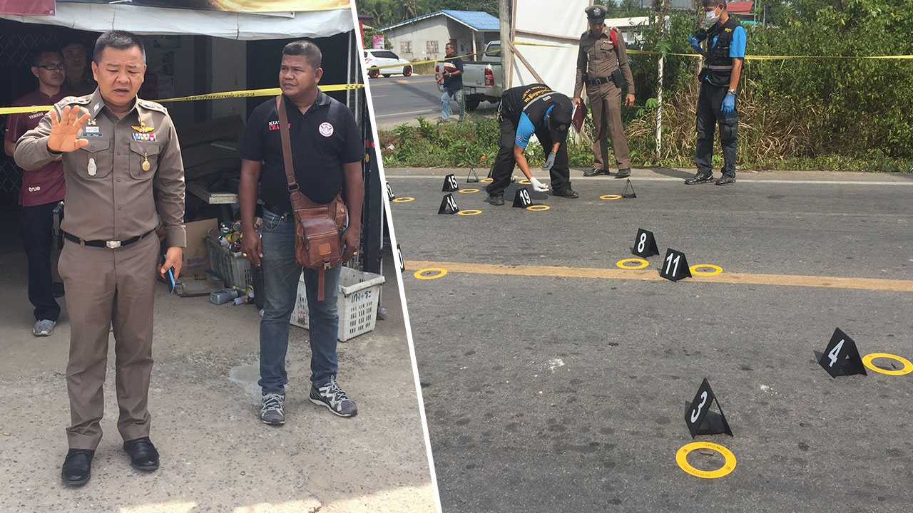 เมื่อวันที่ 30 มี.ค.62 ร.ต.อ.สมพงษ์ ดำจุติ ร้อยเวร สภ.ท่าแพ จ.สตูล รับแจ้งเหตุคนร้ายกราดยิงห้องแถวบริเวณสามแยกแป-ระ หมู่ที่ 1 ต.แป-ระ อ.ท่าแพ จ.สตูล จากนั้นจึงพร้อมด้วย พ.ต.อ.ภูมิสิทธิ์ นาวัง ผกก.สภ.ท่าแพ พ.ต.ท.วิสุทธิ์ แสงมณี รอง ผกก.สส.สภ.ท่าแพ พ.ต.ต.ประจวบ สุวรรณรัตน์ สว.สส.สภ.ท่าแพ ร.ต.อ.เกียรติศักดิ์ เผือกผ่อง รองสว.สส.สภ.ท่าแพ พร้อมด้วยชุดสืบสวนตำรวจภูธร จ.สตูล และตำรวจพิสูจน์หลักฐาน จ.สตูล รุดไปตรวจสอบที่เกิดเหตุ