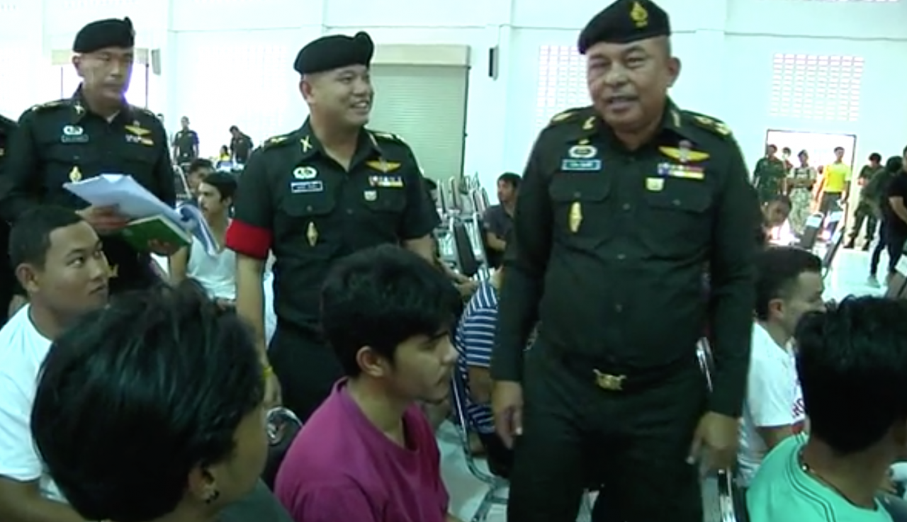 ผบ.มทบ.45 ตรวจเยี่ยมหน่วยคัดเลือกทหาร อำเภอกาญจนดิษฐ์ จ.สุราษฎร์ธานี บรรยากาศเป็นไปด้วยความคึกคัก เผยพบชายไทยที่เข้ารับการเกณฑ์ทหารในส่วน อ.กาญจนดิษฐ์ 900 ราย นำตรวจฉี่พบกว่า 20 ราย สีม่วง แต่ยอดน้อยกว่าปีก่อน นำส่ง นอภ.รับตัวเข้าค่ายบำบัด ส่วนผู้จับใบแดงก็นำไปบำบัดยังหน่วยทหารที่จัดส่งไป...