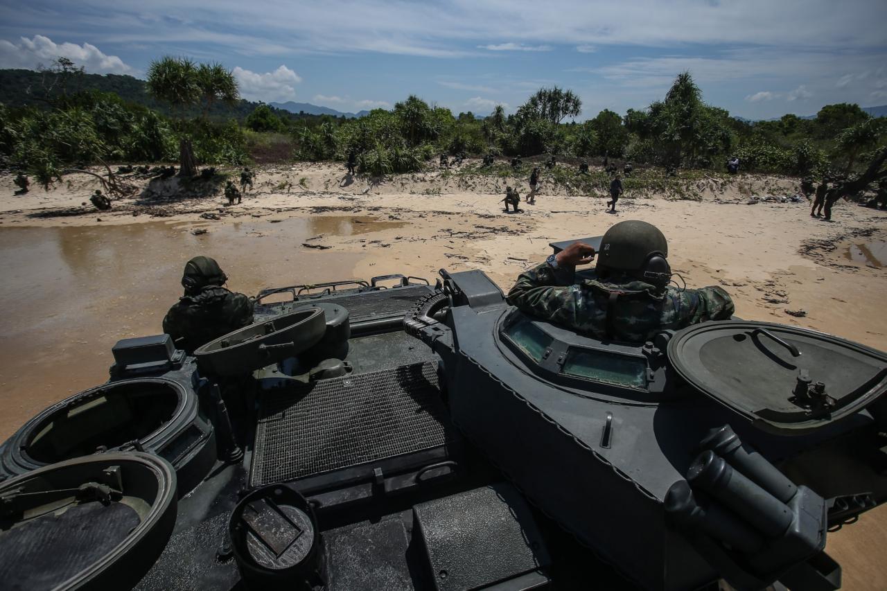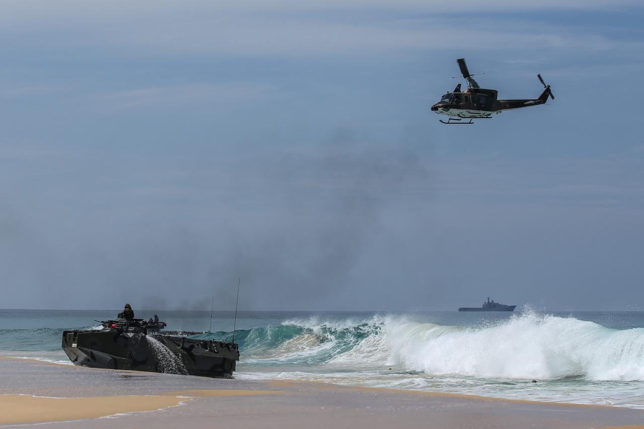 และในวันพรุ่งนี้ (7 เม.ย.) จะมีการฝึกสนธิกำลังดำเนินกลยุทธ์ด้วยกระสุนจริง ซึ่งจะมีการฝึกปฏิบัติการร่วมของกองกำลังนาวิกโยธิน หน่วยบัญชาการต่อสู้อากาศยานและรักษาฝั่ง กำลังของกองทัพบก และกำลังของกองทัพอากาศ.
