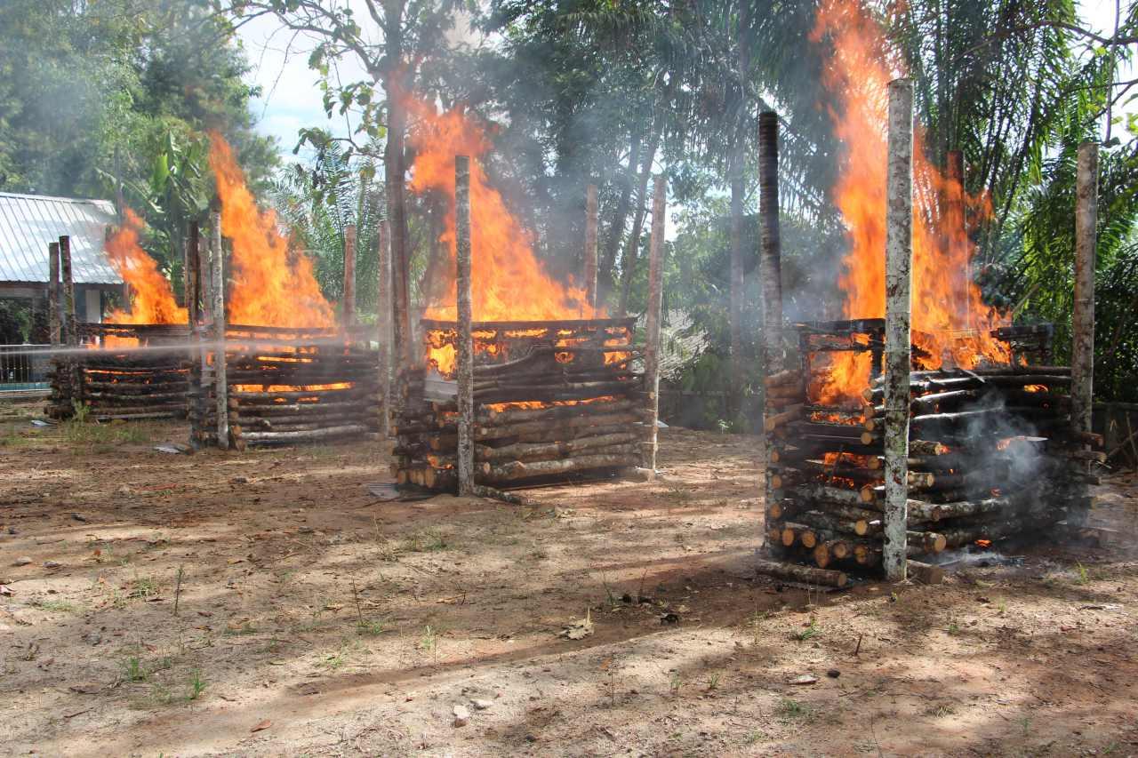 จากนั้นเจ้าภาพได้ทำพิธีจุดไฟเผาทั้ง 5 ศพพร้อมกัน แล้วญาติสนิททำพิธีกรวดน้ำอโหสิกรรมและอุทิศผลบุญให้กับผู้เสียชีวิตทั้ง 5 ศพ.
