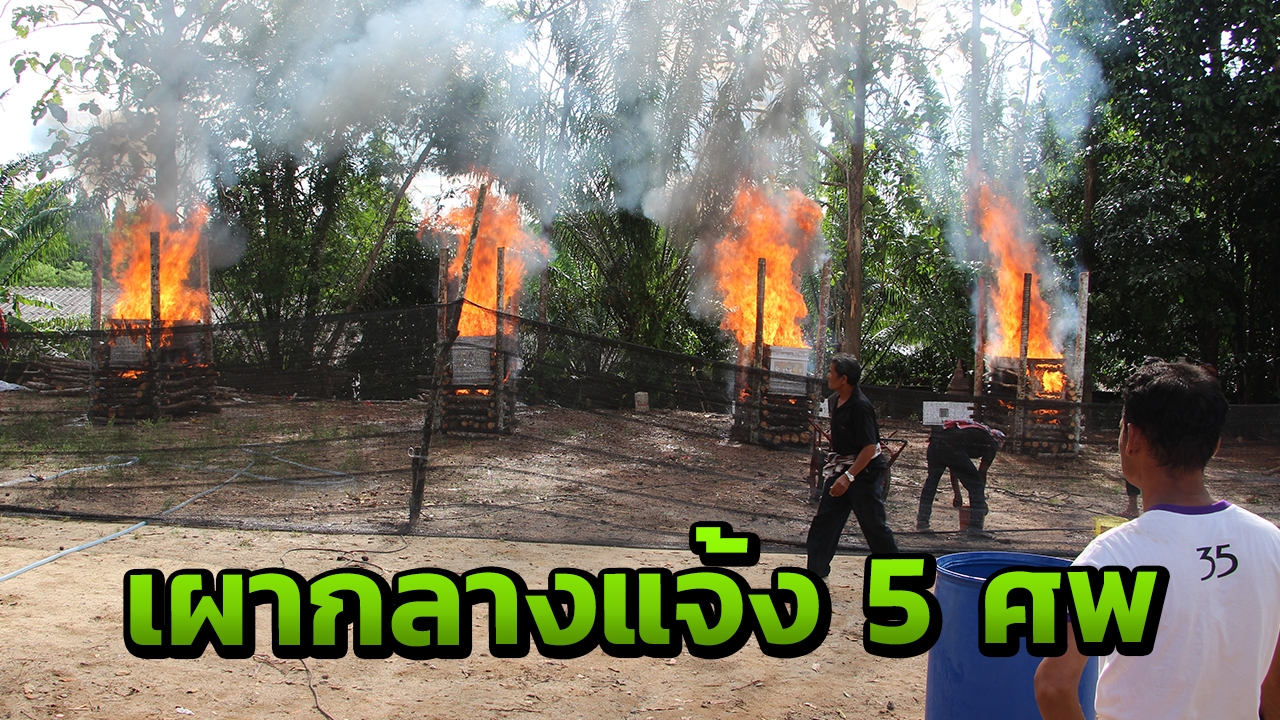 ญาติตั้งเชิงตะกอน เผากลางแจ้ง 5 ศพ ครอบครัวด.ต.ที่ถ้ำพรรณา เมืองคอน เสียชีวิตจากอุบัติเหตุทางถนนที่สระบุรี สุดสลด แม่กับลูกน้อยวัย 8 เดือน ใส่ไว้ในโลงเดียวกัน