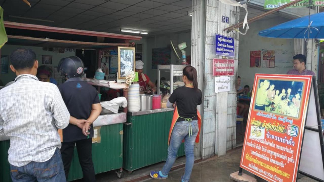 "ส่วนอีก 1 ร้านคือเมนู "เถ้าคั่ว" หรือ เต้าคั่ว มีเฉพาะที่จังหวัดสงขลาที่เดียว ร้านนี้ชื่อว่าร้านป้าจวบ ตั้งอยู่บนถนนยะหริ่ง ตำบลย่อยาง อำเภอเมือง จังหวัดสงขลา เป็นร้านพื้นๆ ไม่ได้ติดแอร์หรูหราแต่ป๋าชอบกินมากๆ โลเกชั่นร้านตั้งอยู่ในถนนสายเก่าแก่ ติดอยู่กับถนนนางงามซึ่งเป็นถนนดังในสงขลา เมนู "เถ้าคั่ว" ไม่ได้หมายความว่าอาหารในจานต้องผ่านการคั่ว แต่เป็นเส้นหมี่ มีผักลวกนานาชนิด กุ้งชุปแป้งทอดกรอบๆ และหมูสามชั้น รวมไปถึงเต้าหู้ ราดด้วยน้ำหวานๆ คล้ายๆ น้ำจิ้มไก่ แต่รสชาติอร่อยกว่ามาก ก่อนทานต้องราดด้วยพริกน้ำส้ม เรียกได้ว่าถ้าชาวสงขลาที่แยกย้ายไปอยู่ต่างบ้านต่างเมือง ถ้าผ่านมาอ่านรีวิวอันนี้ต้องอยากทานและหาโอกาสบินกลับมาแน่นอน"
