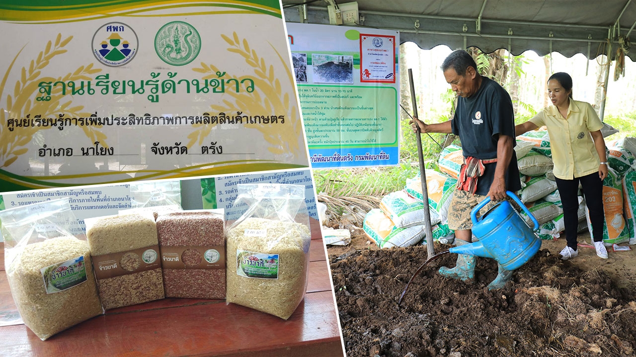 นายชิดชัย ชุมสุด ประธานศูนย์เรียนรู้การเพิ่มประสิทธิภาพการผลิตสินค้าเกษตร กล่าวว่า เกษตรกรในหมู่บ้านส่วนใหญ่อาชีพหลักๆ คือทำนา ทำสวนยาง และปาล์มน้ำมัน แต่มีการเลี้ยงสัตว์ และปลูกพืชผักสวนครัวเสริมในครัวเรือน ในพื้นที่ของตนเองตอนนี้ก็ทำนาปรังอยู่ โดยกรมพัฒนาที่ดิน สถานีพัฒนาที่ดินตรัง ได้เข้ามาส่งเสริมช่วยเหลืออยู่ตลอด ทั้งเรื่องปรับปรุงบำรุงดิน การใช้ปอเทือง รวมถึงการลดต้นทุนการผลิต ทำน้ำหมักชีวภาพสูตรต่างๆ การทำปุ๋ยหมักมาใช้ในนาข้าว ซึ่งได้ดำเนินการมาหลายปีแล้ว ทำให้พื้นที่ใกล้เคียงบริเวณนี้ได้ประโยชน์ไปด้วย เพราะเจ้าหน้าที่พยายามที่จะให้ความรู้แก่พี่น้องเกษตรกรอยู่เป็นประจำ