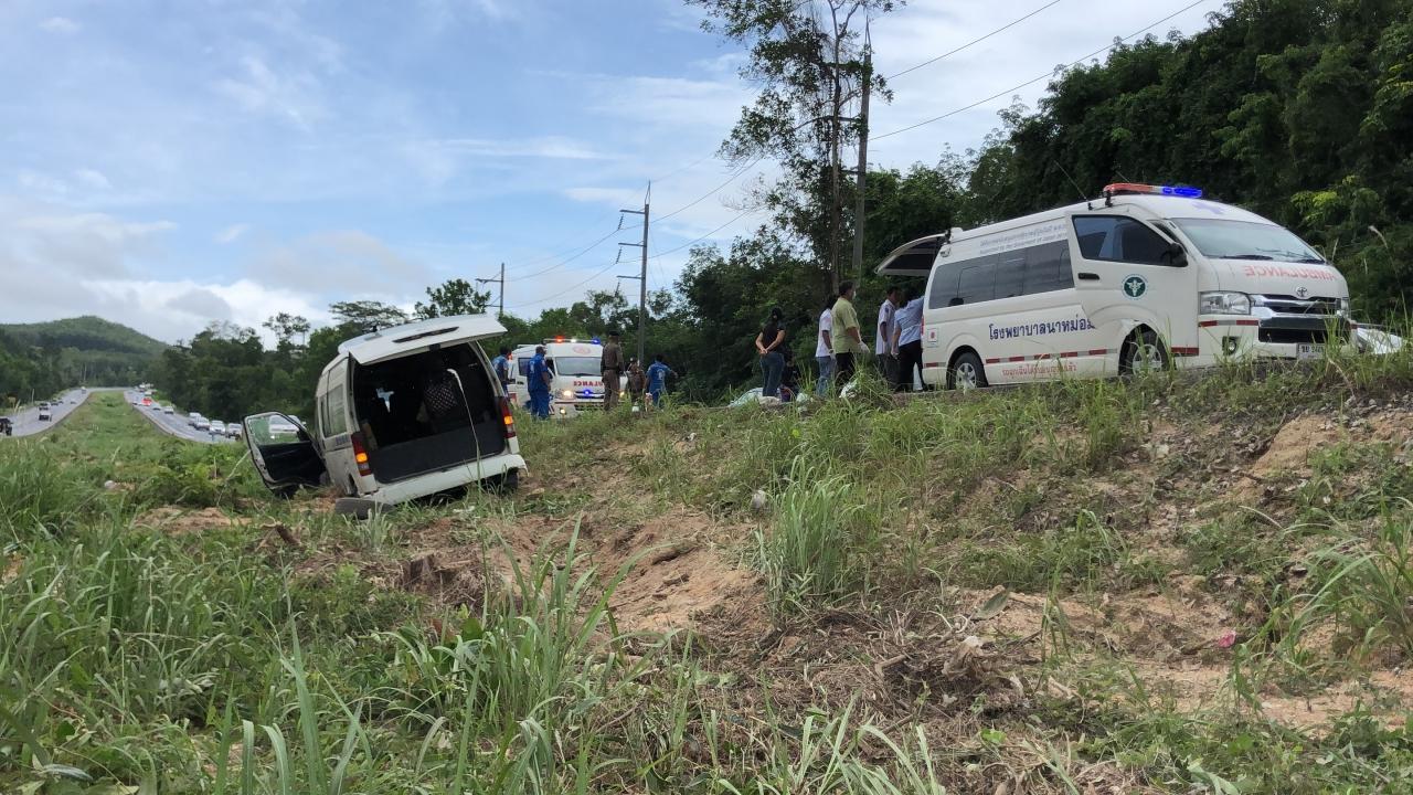 ผู้โดยสารที่มากับรถบาดเจ็บยกคัน จำนวน 9 คน รวมทั้งคนขับอีก 1 คน โดยเฉพาะคนขับซึ่งอยู่ในอาการสลบ ส่วนผู้โดยสารแขนหัก 1 คน ที่เหลือมีอาการบอบช้ำตามร่างกาย หน่วยกู้ภัยนำส่งโรงพยาบาลนาหม่อม 3 คน และโรงพยาบาลสงขลานครินทร์ 7 คน โดยขณะเกิดเหตุรถตู้คันนี้ได้รับผู้โดยสารออกจากสถานีขนส่งหาดใหญ่ ไปยังปลายทางถ้ำตลอด อ.สะบ้าย้อย