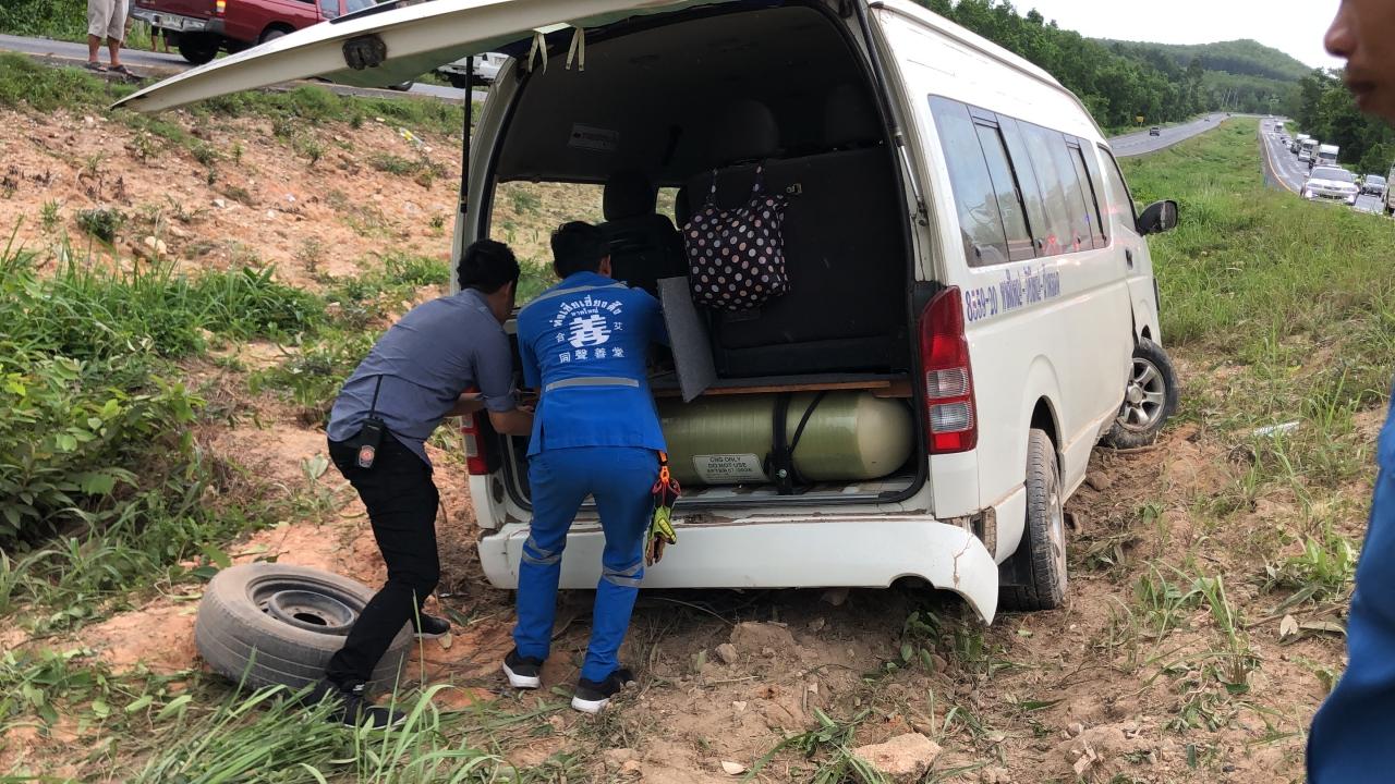จากการสอบถามผู้เห็นเหตุการณ์ ซึ่งขับรถตามหลังรถตู้คันนี้มา บอกว่ารถตู้คนนี้วิ่งมาตามปกติ แต่อยู่ๆ รถก็พุ่งลงไปในคูกลางถนน ลักษณะเหมือนกับคนขับเกิดอาการวูบ และรถได้มีกลุ่มควันขึ้นมาด้วย ผู้ที่ขับรถผ่านมาได้พากันลงไปช่วยนำผู้โดยสารที่ติดอยู่ในรถออกมา และรีบแจ้งหน่วยงานที่เกี่ยวข้องมาช่วยเหลือ