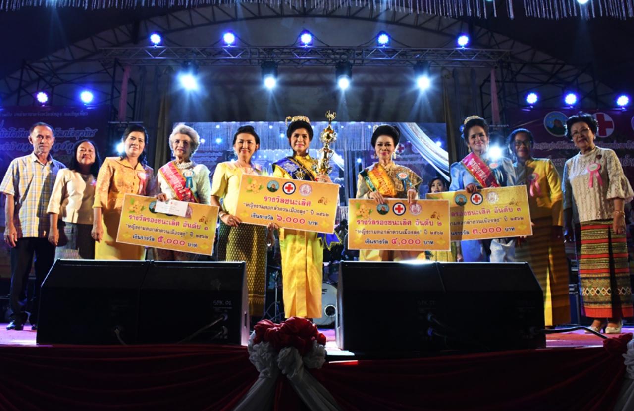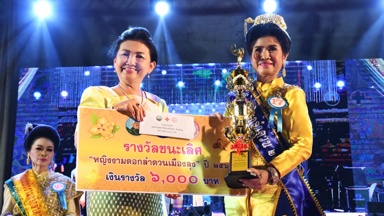 คุณป้าสวยไม่สร่างวัย 62 ปี คว้ารางวัลชนะเลิศการประกวด “หญิงงามดอกลำดวนเมืองลุง” เนื่องในงานสมโภชกระพุทธฯ ท่ามกลางลูกหลานของผู้เข้าประกวดที่มาร่วมให้กำลังใจ