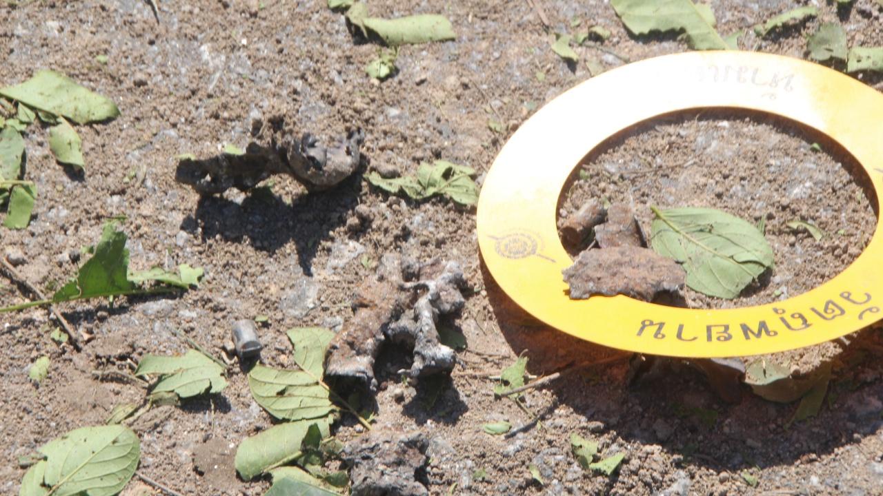 พบที่บริเวณพงหญ้ารกทึบริมถนน ซึ่งเป็นจุดที่คนร้ายลอบวางระเบิด มีหลุมลึก 2 ฟุต กว้าง 4 ฟุต กอหญ้าถูกอานุภาพของระเบิดเตียนโล่งเป็นวงกว้าง และมีเศษซากชิ้นส่วนของระเบิดแสวงเครื่อง ที่คนร้ายประกอบใส่ไว้ในถังแก๊สปิกนิก หนัก 20 กก. จุดชนวนด้วยวิทยุสื่อสาร ตกกระจายเกลื่อนพื้นถนน และพงหญ้ารกทึบริมทาง และห่างจากจุดเกิดเหตุ ประมาณ 50 เมตร ซึ่งอยู่ฝั่งเดียวกับจุดที่คนร้ายลอบวางระเบิด โดยเป็นบ้านพักของ นางซาตีย๊ะ ซาแมงอ อายุ 50 ปี เลขที่ 40 ม.5 ต.บาเจาะ อ.บาเจาะ จ.นราธิวาส ถูกสะเก็ดระเบิดได้รับความเสียหาย ที่บริเวณกระจกประตูของบ้านพักแตก ฝ้าเพดานภายในบ้านแตก และรถยนต์กระบะ ยี่ห้ออีซูซุ สีดำ ทะเบียน บจ 7984 นราธิวาส ที่จอดไว้บริเวณโรงรถข้างบ้านพัก ได้รับความเสียหายที่กระจกแค็บ ด้านตรงข้ามคนขับแตก
