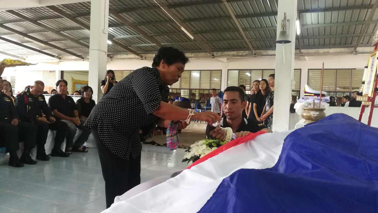 จากนั้นได้คลื่อนร่างของ ร.ท.วัชระพงษ์ ไปยังวัดเจริญราษฎร์ ต.ฉลุง อ.หาดใหญ่ จ.สงขลา เพื่อประกอบพิธีรดน้ำศพ และตั้งบำเพ็ญกุศลศพ โดยมี พันตรีเฉลิมพล มนต์ไชยะ นายทหารธุรการกำลังพล โรงเรียนสงครามพิเศษ ศูนย์สงครามพิเศษ จังหวัดลพบุรี เป็นประธานรดน้ำศพ รวมทั้งพ่อแม่ญาติพี่น้อง เพื่อนๆ ผู้บังคับบัญชาร่วมพิธีบรรยากาศเต็มด้วยความเศร้า โดยร่างของ ร.ท.วัชระพงษ์ จะมีพิธีพระราชทานเพลิงศพในวันที่ 23 ก.ค.นี้ ที่วัดเจริญราษฎร์ และฌาปนกิจที่เมรุวัดม่วงค่อม ต.ทุ่งตำเสา ซึ่งอยู่ไม่ไกลกัน