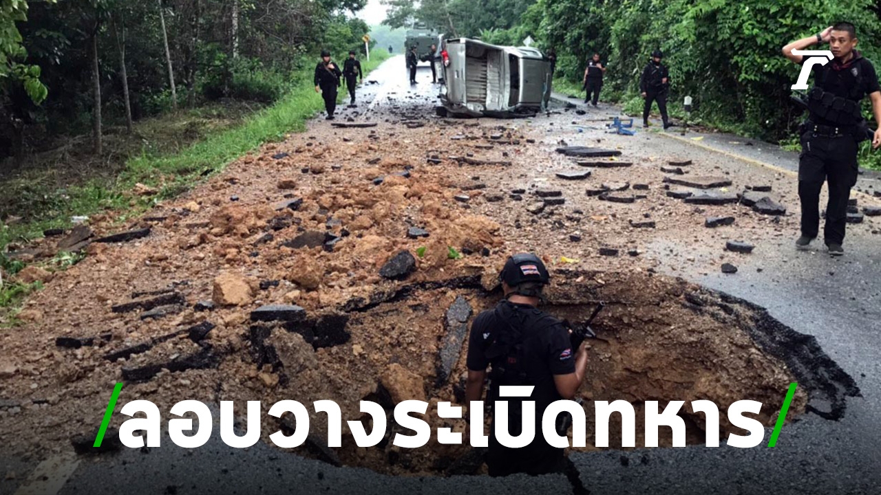 เกิดเหตุคนร้าย ฝังระเบิดใต้ถนน ที่ยะลา ลอบบึมรถปิกอัพ เจ้าหน้าที่ทหารพราน แรงระเบิดทำให้รถพลิกตะแคง เจ็บ 4 นาย คาดสร้างสถานการณ์รายวัน