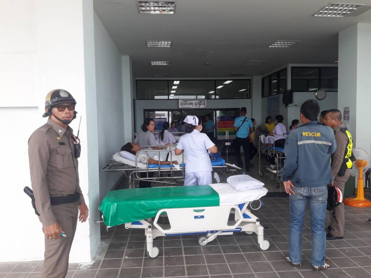 ผู้บาดเจ็บทุกคนจะมีอาการคลื่นเหียน อาเจียน วิงเวียนศีรษะ อย่างไรก็ตามหลังจากที่ได้รับการปฐมพยาบาลและพักผ่อนที่ รพ.พนักงานแต่ละคนมีอาการดีขึ้น จนสามารถเก็บบ้านได้ เหลือที่ทางแพทย์ให้พักฟื้นรอดูอาการอีกว่า 10 คน และผู้ที่มีอาหารรุแรงมากที่สุดจำนวน 2 คนเท่านั้น โดยแพทย์พยาบาลคอยดูแลอย่างใกล้ชิด ซึ่งจนถึงขณะนี้พนักงานทุกคนมีอาการปลอดภัยแล้ว