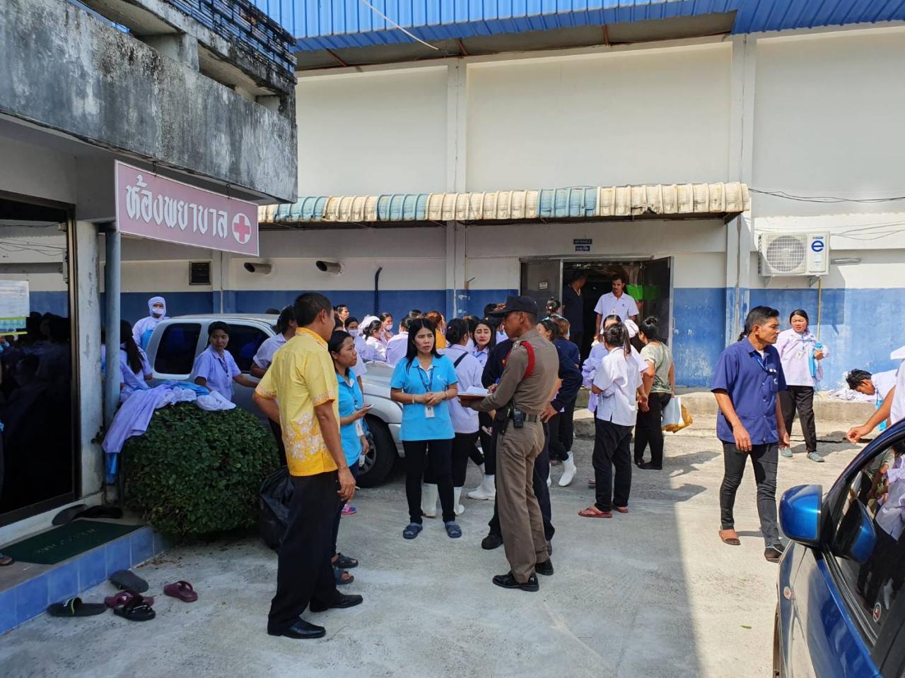 เจ้าหน้าที่หน่วยกู้ภัยระดมกำลังมาทยอยขนย้ายพนักงานทั้งหมดส่ง รพ.ปากพนัง และช่วยปฐมพยาบาลในที่เกิดเหตุ ขณะที่รถดับเพลิงเทศบาลเมืองปากพนังได้เดินทางมาเตรียมความพร้อมหากเหตุการณ์ลุกลามบานปลายจนอาจจะเกิดไฟไหม้โรงงานได้ ซึ่งกู้ภัยได้นำคนงานที่บาดเจ็บจำนวน จำนวน 33 คนส่ง รพ.ปากพนัง โดยมีทีมแพทย์ พยาบาลระดมกำลังช่วยเหลืออย่างชุลมุน ก่อนที่กู้ภัยจะนำผู้บาดเจ็บชุดที่ 2 จำนวน 31 คนส่ง รพ.ปากพนัง
