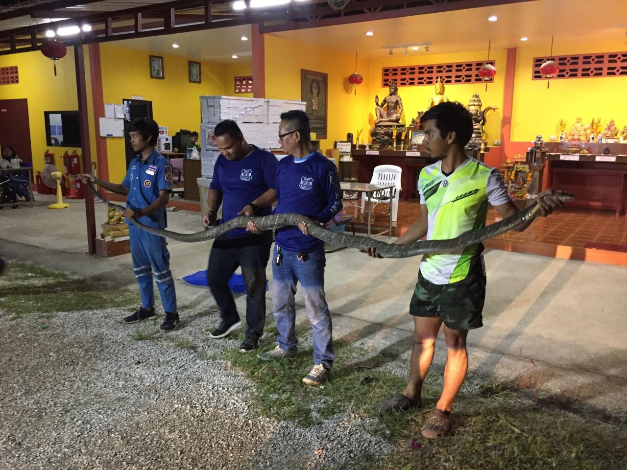 เมื่อเวลา 19.00 น. วันที่ 27 ก.ค. 2562 จนท.กู้ภัยมูลนิธิกระบี่พิทักษ์ประชา จ.กระบี่ รับแจ้งจาก นางอนันตยา พลบำรุงวงศ์ ให้ไปช่วยจับงูจงอางขนาดใหญ่ ที่บ้านเลขที่ 508 หมู่ 1 ต.เขาคราม อ.เมืองกระบี่ จนท.จึงเดินทางไปตรวจสอบ พบที่หน้าบ้านหลังดังกล่าวมีงูจงอางขนาดใหญ่ ยาวร่วม 5 เมตร กำลังกินตัวเงินตัวทองยาวประมาณ 1 เมตร โดยงูกำลังกลืนตัวเงินตัวทองเหลือเพียงหางโผล่ออกมาประมาณ 1 ฟุต
