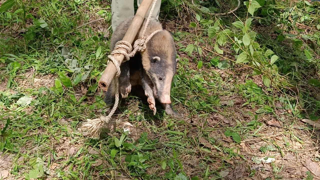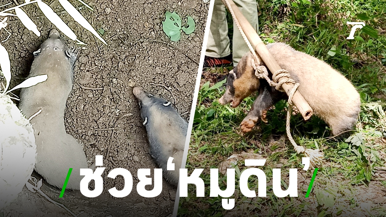 ชาวบ้านเกือบทั้งหมู่บ้าน แห่มาช่วยหมูดิน 2 ผัวเมีย วิ่งหนีสุนัขตกบ่อร้างกลางสวนยางพารา ที่จ.ตรัง บาดเจ็บ ใช้เชือกคล้องขึ้นมาได้อย่างปลอดภัย เผยเป็นสัตว์ป่าสงวนฯ มีกลิ่นสาบแรงไว้ป้องกันตัว