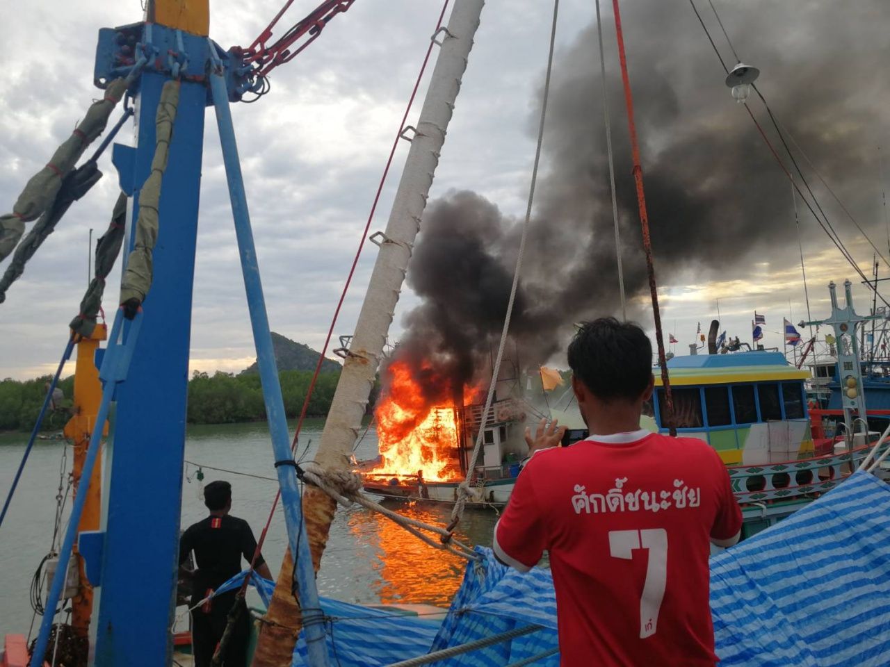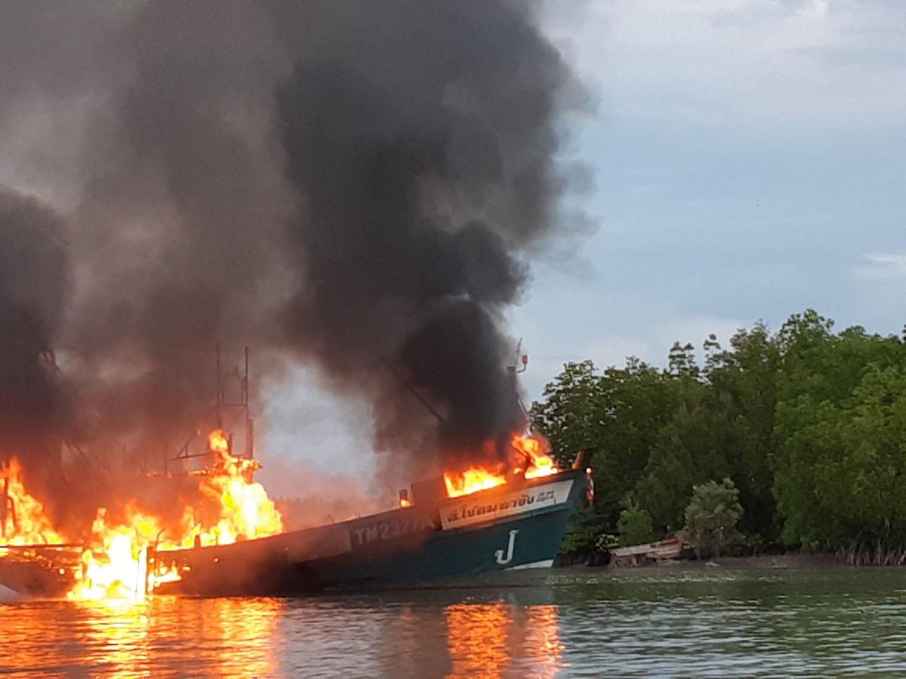 จากการสอบถามลูกเรือ 2 คนที่อยู่บนเรือประมงลำดังกล่าว ระบุว่า ก่อนเกิดเหตุได้ยินเสียงเหมือนกับไฟฟ้าลัดวงจรในห้องเครื่อง และเกิดประกายไฟจนเกิดไฟลุกไหม้ในห้องเครื่อง ได้ช่วยกันนำถังดับเพลิง จำนวน 2 ถัง มาช่วนกันฉีดเพื่อดับเพลิง แต่ไม่สามารถดับได้ เพราะเพลิงลุกลามอย่างรวดเร็ว จึงได้รีบแจ้งเจ้าหน้าที่ และเรือประมงลำอื่นที่จอดอยู่ใกล้ๆ ให้ช่วยลากออกจากที่จอด เพราะยังมีเรือลำอื่นจอดอยู่ด้วย และจะได้ประสานเจ้าของเรือ โดยเบื้องต้นทราบว่าอาศัยอยู่ที่ อ.สิชล จ.นครศรีธรรมราช เข้าตรวจสอบอย่างละเอียด ส่วนสาเหตุและความเสียหายอยู่ระหว่างการตรวจสอบต่อไป.