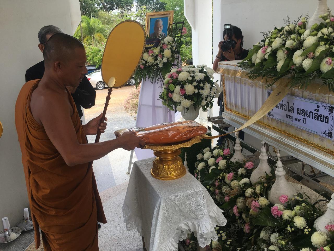 บรรยากาศในพิธีเป็นไปอย่างเรียบง่าย ครอบครัวและประชาชนทั่วไปที่รักลุงไล่มาร่วมพิธี และแสดงความอาลัยเป็นครั้งสุดท้ายจำนวนมาก นอกจากจะมีการทำพิธีทางศาสนาแล้ว ทางสำนักงานสงเคราะห์ทหารผ่านศึกเขตนครศรีธรรมราชยังได้จัดพิธีทางทหารเพื่อเชิดชูเกียรติและสดุดีในวีรกรรมอันกล้าหาญของ พลทหารไล่ ผลเกลี้ยง หรือลุงไล่ ซึ่งเป็นทหารผ่านศึกสงครามมหาเอเชียบูรพา หรือสงครามโลกครั้งที่ 2 โดยการยืนสงบนิ่ง และเป่าแตรนอนเพื่อเป็นการไว้อาลัยดวงวิญญาณของพลทหารไล่เป็นเวลา 1 นาที พร้อมกับมอบเงินอีกจำนวนหนึ่งเพื่อช่วยเหลือครอบครัว