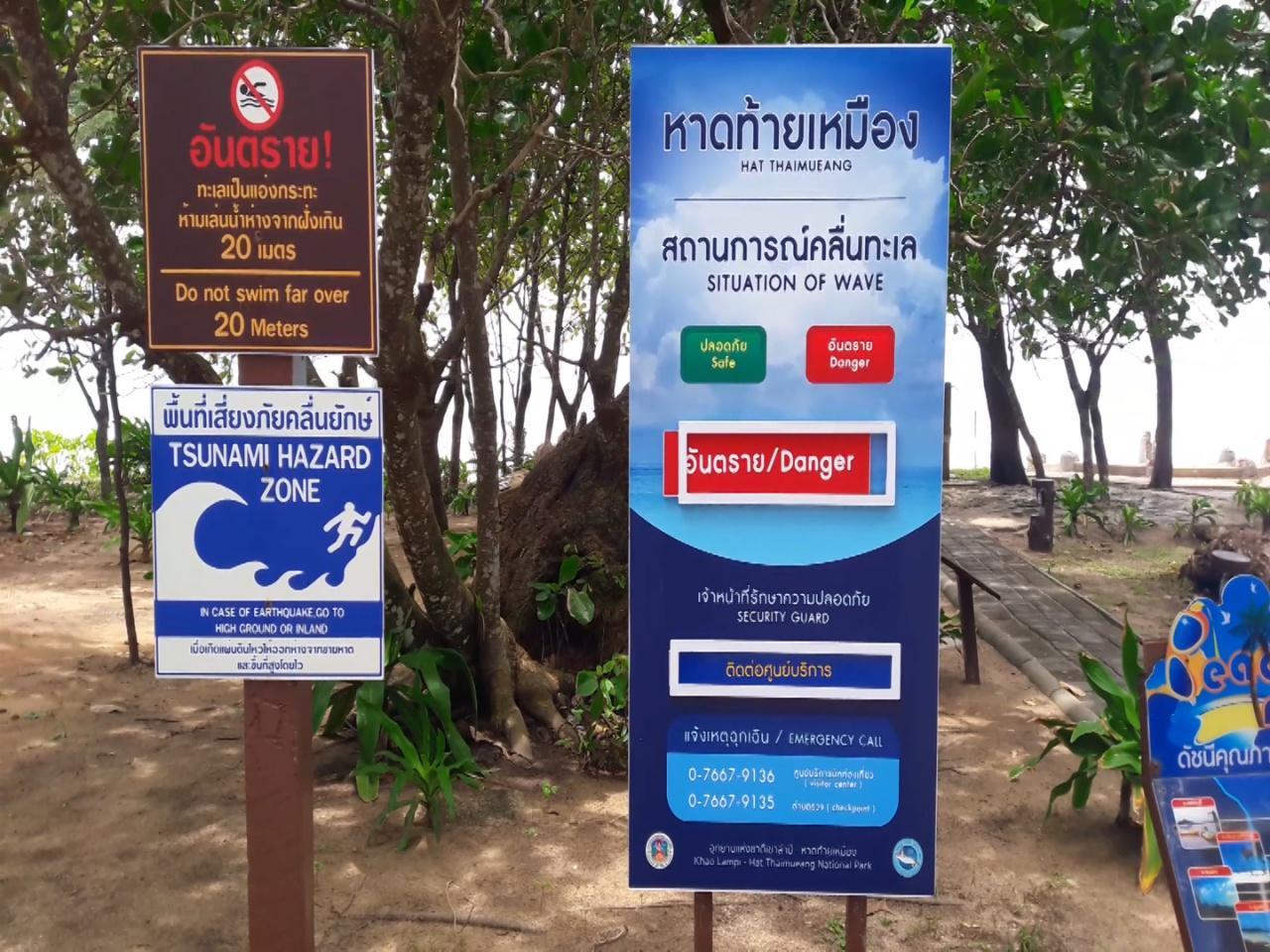 ด้าน นายมงคล ลิ่ววิริยะกุล หัวหน้าอุทยานแห่งชาติเขาลำปี-หาดท้ายเหมือง กล่าวว่า ในช่วงนี้พบว่าคลื่นลมในทะเลมีกำลังแรง ทำให้เกิดคลื่นซัดเข้าหาฝั่ง ทางอุทยานฯ จึงมีความเห็นว่าคลื่นในขณะนี้เป็นอันตรายต่อนักท่องเที่ยวที่ต้องการลงเล่นน้ำทะเลในบริเวณดังกล่าว ซึ่งทางอุทยานฯ ได้ขึ้นธงแดงไว้เป็นสัญลักษณ์ และ ติดป้ายเตือนนักท่องเที่ยวห้ามไม่ให้ลงเล่นน้ำโดยเด็ดขาด หากฝ่าฝืนอาจเป็นอันตรายต่อชีวิตได้.