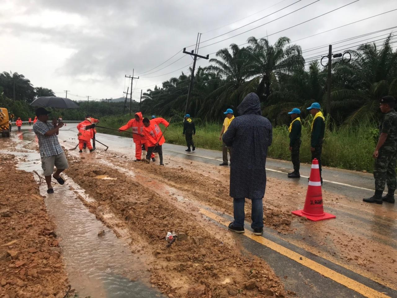 ผู้สื่อข่าวรายงานจาก จ.กระบี่ เมื่อวันที่ 29 ส.ค.2562 สภาพอากาศในพื้นที่มีฝนตกติดต่อกัน 1-2 วัน เป็นผลจากหย่อมความกดอากาศต่ำกำลังแรงพัดปกคลุมภาคใต้ และมีลมมรสุมตะวันตกเฉียงใต้พัดปกคลุม ทำให้หลายพื้นที่มีฝนตกหนัก ทางจังหวัดออกประกาศเตือนให้เฝ้าระวังน้ำท่วมฉับพลัน น้ำป่าไหลหลาก และดินโคลนถล่ม โดยตั้งแต่เมื่อเวลา 08.00 น. จนท.ปภ.อ.คลองท่อม รับแจ้งมีดินสไลด์ลงมาบนถนนเส้นทางคลองท่อม-ลำทับ หมู่ 9 ต.คลองท่อมใต้ เป็นระยะทางยาวร่วม 10 เมตร จนท.ทหารจาก ร.15 พัน 1 พร้อม จนท.แขวงทางหลวง จ.กระบี่ ต้องเข้าไปตรวจสอบและปิดการจราจร 1 ฝั่ง พร้อมเร่งเคลียร์เส้นทาง