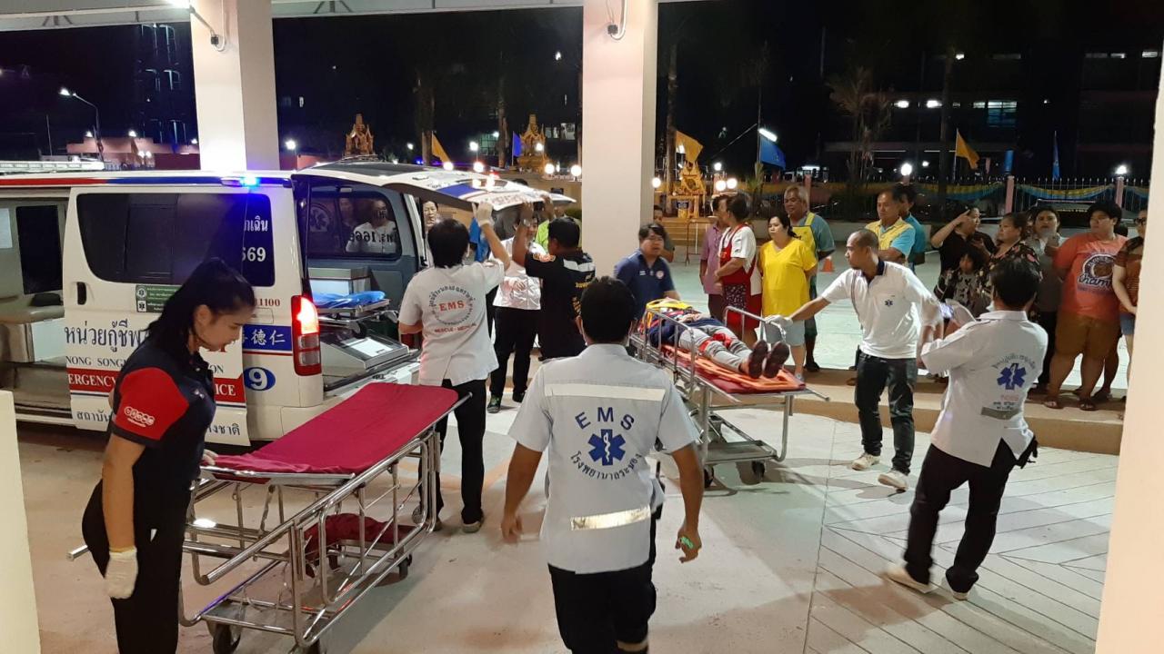 ต่อมาผู้สื่อข่าวได้เดินทางไปที่โรงพยาบาลระนองพบ นายพรเทพ ผ่องศรี รองผู้ว่าราชการจังหวัดระนอง ได้เดินทางมาอำนวยการอุบัติเหตุหมู่ และได้ให้สัมภาษณ์กับผู้สื่อข่าวว่า จากเหตุที่เกิดขึ้นมีผู้ได้รับบาดเจ็บที่นำส่งโรงพยาบาลรวม 30 ราย เบื้องต้นแพทย์ได้ให้การตรวจรักษา และให้กลับบ้านได้แล้ว 3 ราย มีผู้ได้รับบาดเจ็บสาหัส 2 ราย ส่วนที่เหลือยังต้องพักรักษาตัวที่โรงพยาบาลระนองในคืนนี้ก่อน ส่วนสาเหตุและรายละเอียดต่างๆ ทางเจ้าหน้าที่ตำรวจกำลังทำการสอบสวนและหาสาเหตุที่ชัดเจนต่อไป