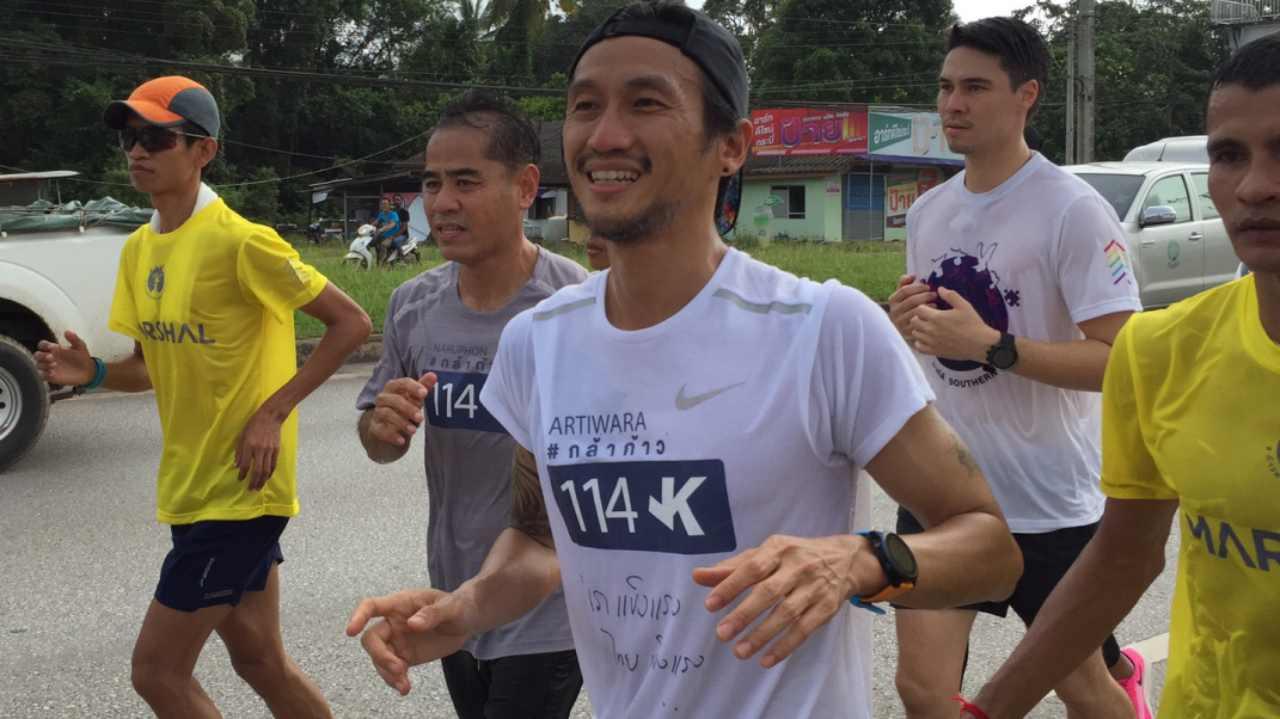 “ตูน บอดี้สแลม” นำทีมก้าวเพื่อ 7 รพ.ภาคใต้ วิ่งวันแรก 114 กม.ถึงกระบี่แล้ว ยอดบริจาคทะลุ 15 ล้าน วิ่งต่อวันที่ 2 ทันที มีดารา นักแสดง ร่วม "วิ่งผลัด" สู่จ.พังงา เป็นก้าวต่อไป