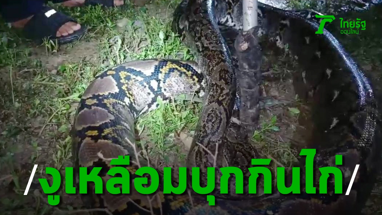 เจ้าของคอกไก่พัทลุงอึ้ง 2 สัปดาห์ไก่หายหมดคอก ไปดูเจองูเหลือมยาวกว่า 3 เมตร ขดตัวกลม และอีกตัวยาวกว่า 4 เมตร บุกกินไก่กว่า 50 ตัวเหลือไว้ดูต่างหน้าแค่ตัวเดียว โทรแจ้งเจ้าหน้าที่กู้ภัยมาจับ