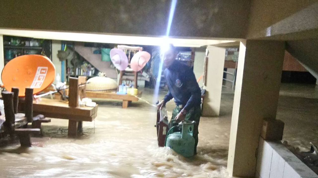 จากนั้นเวลา 21:00 น. ทหารหน่วยพัฒนาการเคลื่อนที่ 46 และชาวบ้าน เข้าช่วยกันขนของ ให้กับบ้านนายสมหมาย ชูพรมแก้ว อายุ 73 ปี พื้นที่ บ้านต้นมะพร้าว ม.6 ตำบลถ้ำสิงขร อำเภอคีรีรัฐนิคมจังหวัดสุราษฎร์ธานี ที่อยู่อาศัยกับภรรยาเพียงสองคน หลังเกิดฝนตกหนักในพื้นที่นานต่อเนื่อง ทำให้น้ำล้นคลอง ต.เต่า ที่ห่างจากตัวบ้านประมาณ 20 เมตร เข้าท่วมบ้านอย่างรวดเร็วแบบไม่คาดคิด ระดับน้ำสูงประมาณ 50 เซนติเมตร ทำให้ต้องเร่งย้ายของจากใต้ถุนขึ้นบนบ้านชั้นสองอย่างเร่งด่วน