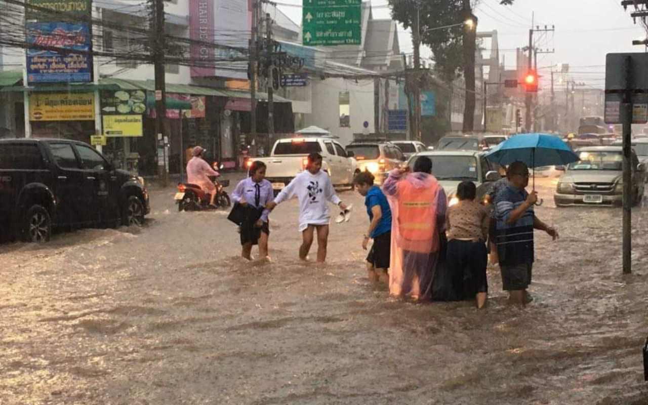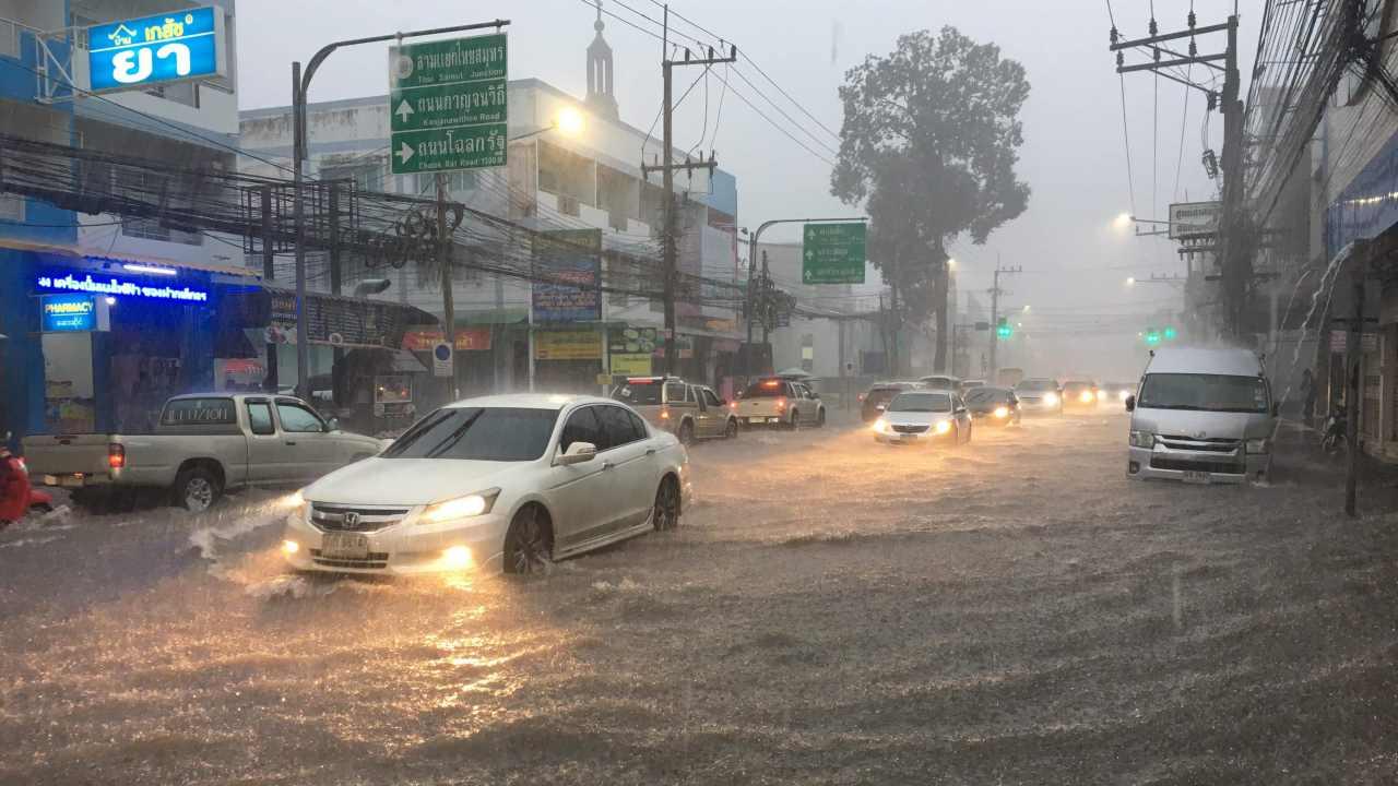 ฝนเดือนพฤศจิกายน ถล่มเมืองสุราษฎร์ฯ นานร่วมชั่วโมง เกิดน้ำท่วมถนนหลายสายช่วงเวลาเร่งด่วน เจ้าหน้าที่ต้องออกมาอำนวยความสะดวก เก็บขยะที่อุดตันตามท่อระบายน้ำ