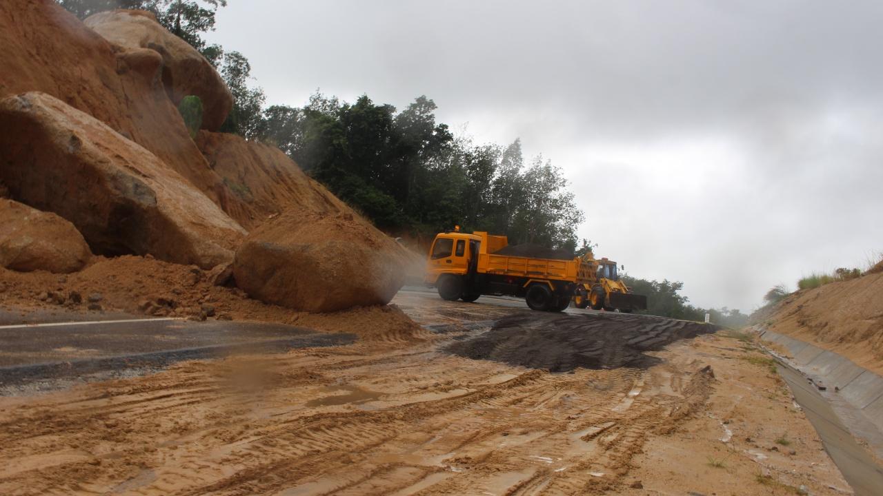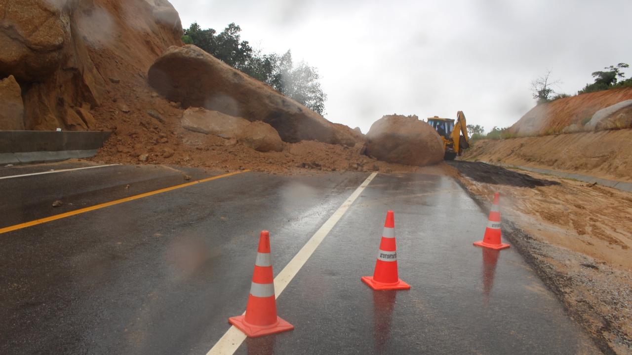 แต่ถึงอย่างไรก็ตามแม้เจ้าหน้าที่จะขนย้ายก้อนหิน ที่ถล่มหล่นมาขวางถนนเป็นที่เรียบร้อยแล้ว เจ้าหน้าที่ก็ต้องใช้เวลาอีกระยะหนึ่งพร้อมเครื่องมือกลหนัก ในการย่อยหินก้อนขนาดใหญ่และขนาดต่างๆ อีก จำนวน 8 ก้อน ซึ่งมีน้ำหนักประมาณ 100 ตัน ที่อยู่บนเนินทิ้ง เนื่องจากหากมีสภาวะฝนตกลงมาอย่างต่อเนื่อง หินที่จุดดังกล่าวอาจจะสไลด์หล่นมาขวางถนนอีก และอาจเป็นอันตรายถึงชีวิต หากในช่วงดังกล่าวมีประชาชนใช้ยานพาหนะสัญจรไปมา.
