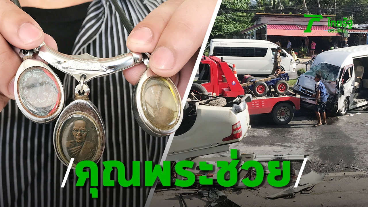 เซลส์หลอดไฟ ขับกระบะขึ้นเขาป่าตอง ฝนตกถนนลื่น เสียหลักพุ่งข้ามเกาะกลางถนน ชนรถตู้พังยับ นักท่องเที่ยวเจ็บ ส่วนรถตัวเองหงายท้อง ไม่เจ็บแม้แต่นิด เชื่อปาฏิหาริย์ 3 หลวงพ่อที่แขวนไว้
