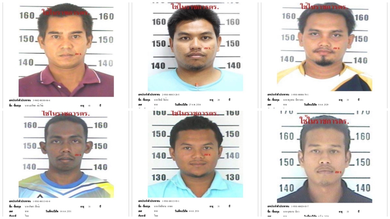 มี 1.นายมะอีซอ เจ๊ะโซ๊ะ อายุ 41 ปี อยู่บ้านเลขที่ 36/7 หมู่ 3 บ้านป่าพ้อ ต.ลำใหม่ อ.เมืองยะลา 2.นายฮีลมี ยีเล๊าะ อายุ 28 ปี อยู่บ้านเลขที่ 26/2 หมู่ 4 บ้านปอเยาะ ต.ลำใหม่ อ.เมืองยะลา 3.นายพรุกอน บือราเฮง อายุ 33 ปี อยู่บ้านเลขที่ 61 หมู่ 5 บ้านบาตันใน ต.ลิดล อ.เมืองยะลา 4.นายอัซฮา ตือง๊ะ อายุ 31 ปี อยู่บ้านเลขที่ 34/4 หมู่ 5 บ้านบาตันใน ต.ลิดล อ.เมืองยะลา 5.นายอิสตีซาน กาซอ อายุ 31 ปี อยู่บ้านเลขที่ 245/1 หมู่ 1 บ้านลำใหม่ ต.ลำใหม่ อ.เมืองยะลา จ.ยะลา และ 6.นายอุสมาน นิแว อายุ 33 ปี อยู่บ้านเลขที่ 234/2 หมู่ 1 บ้านลำใหม่ ต.ลำใหม่ อ.เมืองยะลา