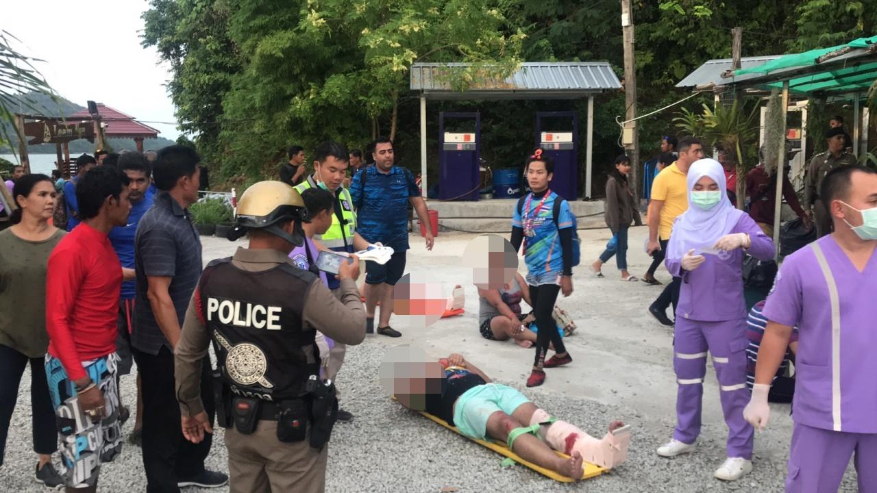 สำหรับผู้บาดเจ็บ ประกอบด้วย นักท่องเที่ยว 8 คน ไกด์ 1 คนและกัปตันเรือสปีดโบ๊ตอีก 1 คน ซึ่งกัปตันเรือได้รับบาดเจ็บสาหัส โดยได้รับการปั๊มหัวใจมาตลอดขณะลำเลียงขึ้นฝั่ง และเสียชีวิตในเวลาต่อมาที่โรงพยาบาล อบจ.ภูเก็ต เบื้องต้นยังไม่ทราบชื่อ-นามสกุล โดยสปีดโบ๊ตลำดังกล่าวมีคนบนเรือทั้งหมด 44 คน เป็นกัปตันและลูกเรือ 5 คน (กัปตัน ลูกเรือ 2 คน ไกด์นำเที่ยว 1 คน และนักศึกษาฝึกงาน 1 คน) นักท่องเที่ยวต่างชาติ 39 คน
