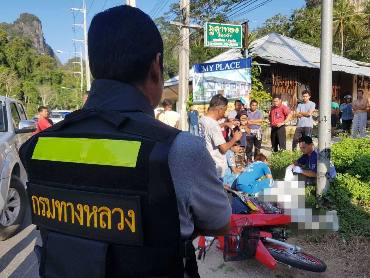 เวลา 08.30 น. วันที่ 25 ธ.ค. พ.ต.ท.ชาติชาย นาคปักษี สว.สอบสวน สภ.เมืองกระบี่ รับแจ้งมีเหตุรถจักรยานยนต์ชนเสาไฟฟ้า ริมถนนกระบี่-เขาทอง หมู่ 4 ต.ไสไทย มีผู้เสียชีวิตในที่เกิดเหตุ 1 ราย