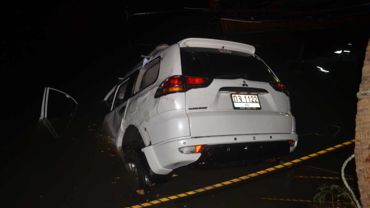 ชาวบ้านเล่าเหตุการณ์ระทึกเหมือนในหนัง รถปาเจโร่ "นายกแจ๊ค" นายกเทศมนตรีนครตรัง ขับพุ่งท่าเรือปากปรน ข้ามเรือ 3 ลำก่อนดิ่งลงคลอง เจอศพคนขับแล้ว ส่วนนายกยังหาร่างไม่พบ คาดหลุดออกจากรถตอนตกกระแทกพื้นน้ำ