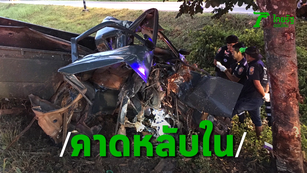 หนุ่มวัย 35 ขับกระบะกลับบ้านช่วงเช้ามืด เสียหลักพุ่งชนต้นไม้เกาะกลางถนนพังยับ ดับอนาถติดคาซาก ตร.คาดหลับใน