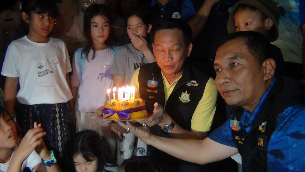 ผู้สื่อข่าวรายงานเพิ่มเติมว่า จากนั้นทาง อธิบดีกรมทรัพยากรทางทะเลและชายฝั่ง พร้อมด้วย ผู้บัญชาการกองทัพเรือภาค 3 เจ้าหน้าที่กรมอุทยานแห่งชาติสัตว์ป่าและพันธุ์พืช นายอำเภอท้ายเหมือง ร่วมกันนำเค้ก จาก นายจำเริญ ทิพญพงศ์ธาดา ผู้ว่าราชการจังหวัดพังงา ร่วมฉลองวันเกิดให้แก่ลูกเต่ามะเฟือง ในครั้งนี้ด้วย.