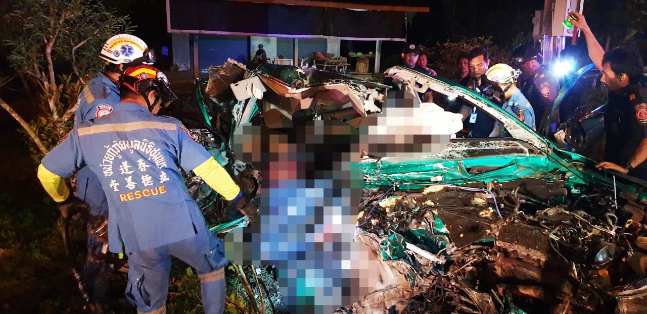 ห่างออกไปประมาณ 20 เมตร บริเวณหน้าบ้านของชาวบ้านพบรถยนต์กระบะโตโยต้า รีโว่ ตอนเดียวสีเขียว ทะเบียน บษ 9512 ราชบุรี สภาพพังยุบเป็นเศษเหล็กทั้งคัน ชิ้นส่วนรถหลุดกระจายเกลื่อนถนน มีคนถูกอัดก๊อบปี้เสียชีวิตติดอยู่ภายใน 3 ศพ เป็นผู้ชาย 1 ศพ ผู้หญิง 2 ศพ หน่วยกู้ภัยต้องใช้เครื่องมือตัดถ่างช่วย จึงนำร่างทั้ง 3 ศพออกมาได้ทั้งหมด ทราบชื่อคนขับ นายคุณากร แก้วเพชร อายุ 23 ปี หมู่ 4 ตำบลหงส์เจริญ อ.ท่าแซะ จ.ชุมพร นางสาวนนทิยา ภัคดีจำรูญ อายุ 22 ปี หมู่ที่ 4 ตำบลเขาไชยราช อ.ปะทิว จ.ชุมพร นางสาวปรัชญา นาคแกมทอง อายุ 22 ปี บ้านอยู่ตำบลไชยราช อ.บางสะพานน้อย จ.ประจวบคีรีขันธ์